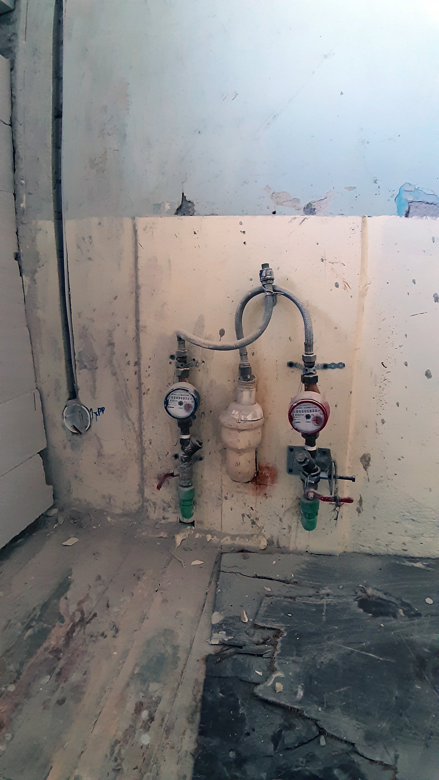 Ühistul oma san. tehnik, kes sulgeb ja vee ning teostab veearvestite plommimise. Kortermaja püstikutes plasttorud.