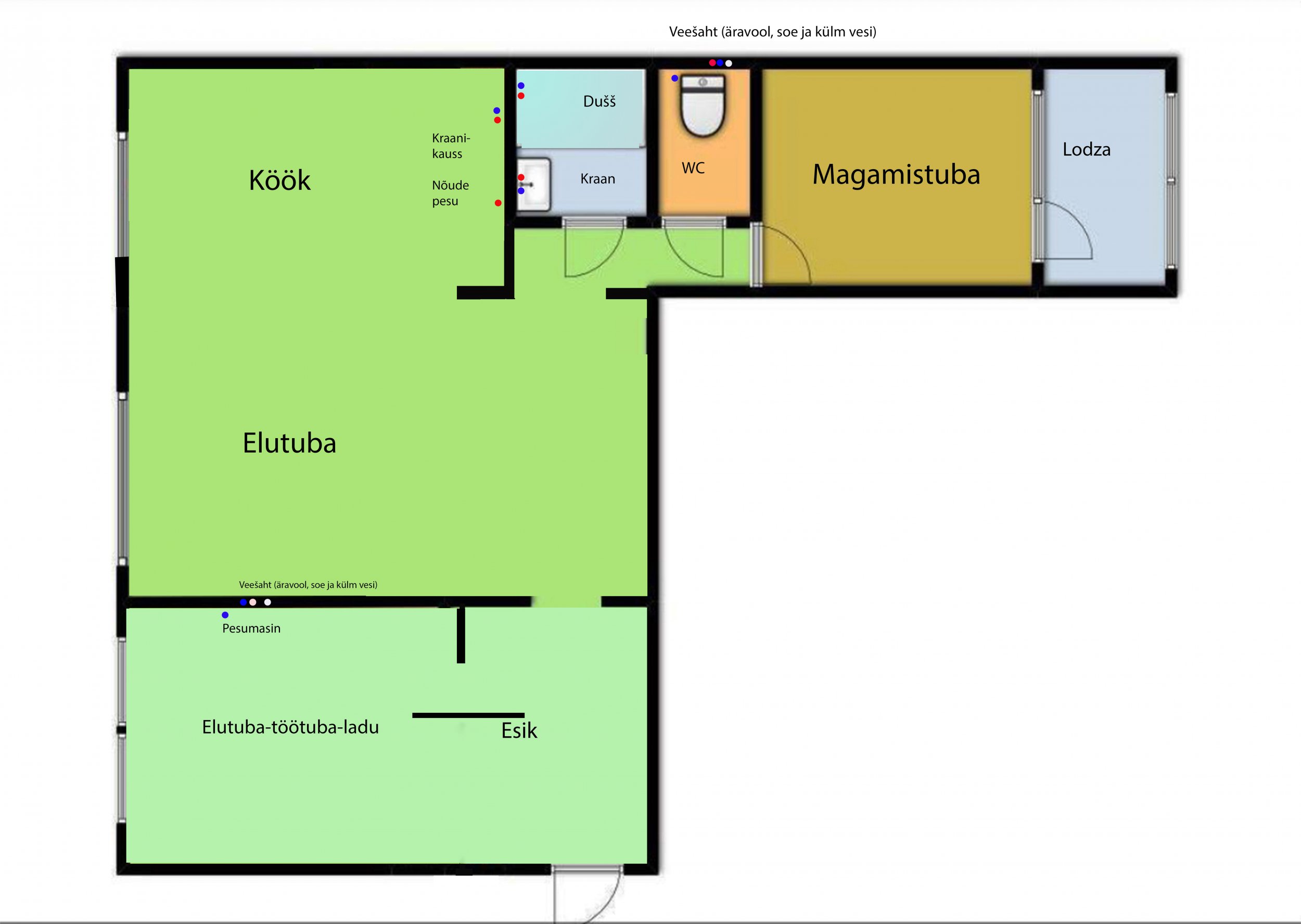 * Avatud köögiosa: torustik ja äravool köögi valamule ja nõudepesumasinale