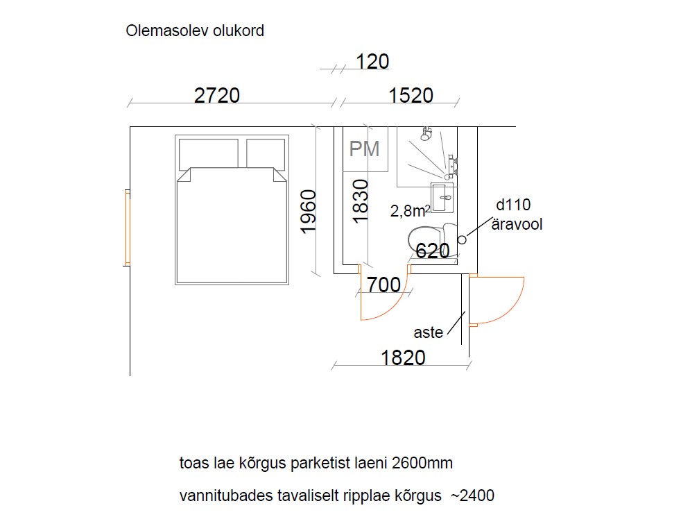 Plaanis on maha võtta kaks kergseina (ning uued asemele ehitada) et suurendada vannitoa pindala. Lammutustöödeks on töötaja olemas.
