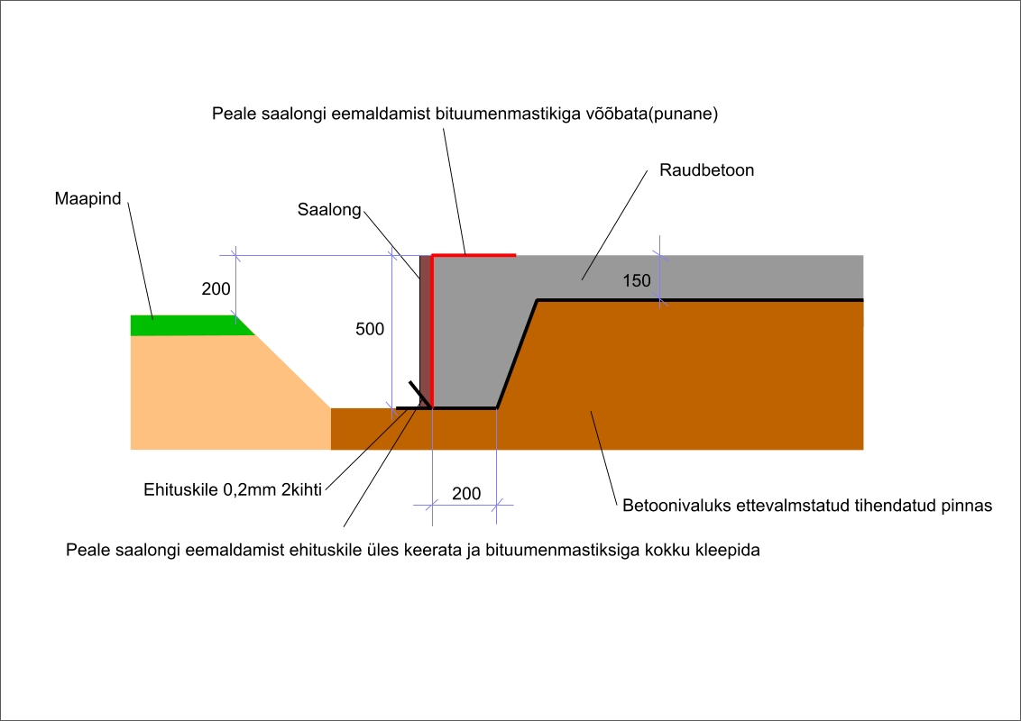 Pinnas tuleb koorida ja killustikuga tihendada, millele omakorda paigaldatakse EPS120, 100mm, ehituskile ja valatakse raudbetoonplaat 150mm C20/25 8#150 armatuuriga. Hoone perimeetris tehakse vundament sügavam. Samuti tuleb hoone vundamendi perimeeter soojustada vahtplastiga EPS 120 perimeeter 100mm.