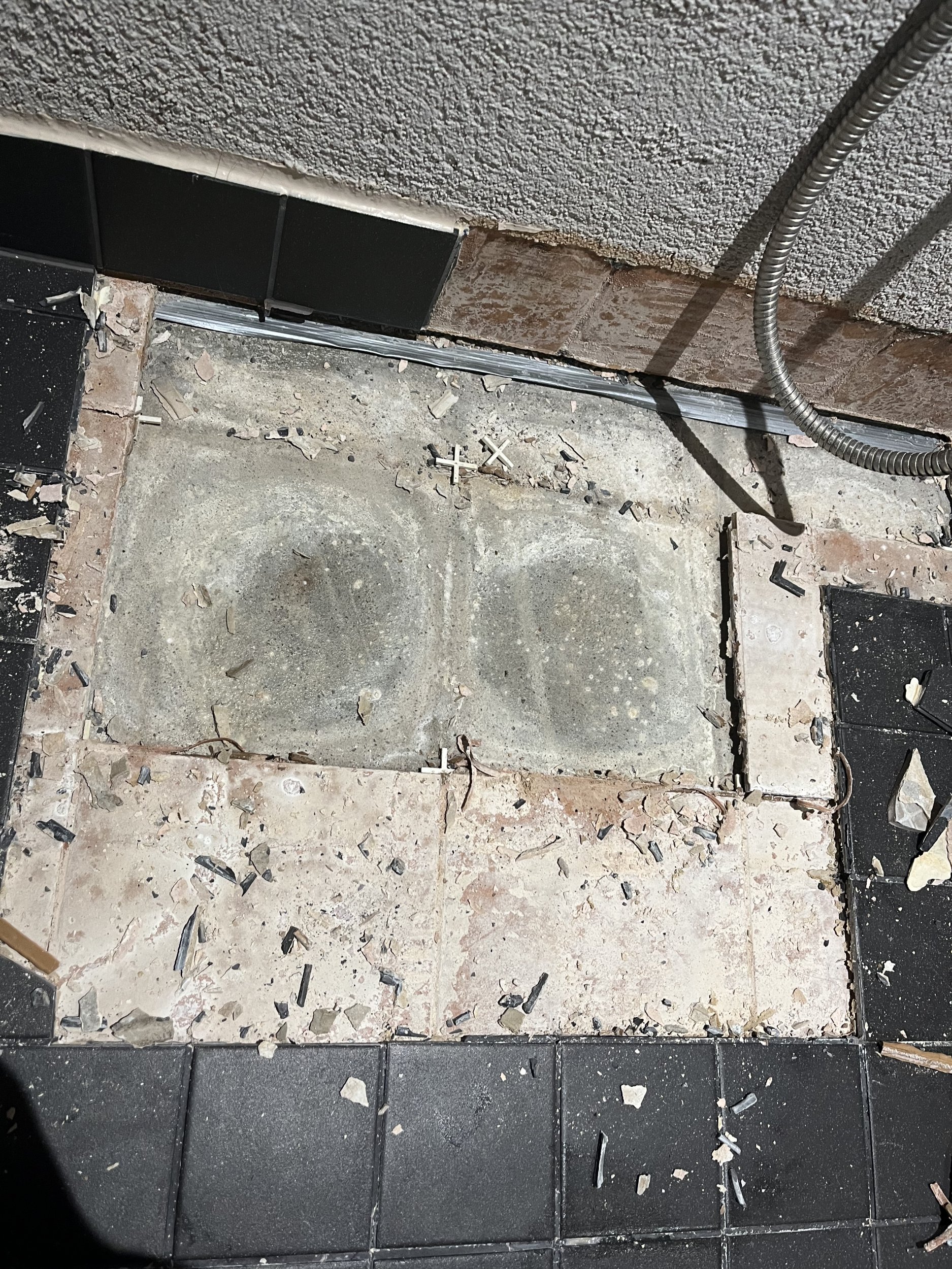 Vaja oleks lõhkuda vannitoa dušinurga seinad. Kõige peal on krohv, seal all plaadid. Tegemist on kipsseintega. Kuna seinaplaatide lõhkumisel tuleb ilmselt ka kips kaasa, peaks pärast konstruktsioonile uue kipsseina ehitama. Põhjus selles, et avastasime et plaatide all on olematu veetõke. Samuti peaks lõhkuma vannitoa ja sauna põranda ning uuesti plaatima. Vanni taga olev sein oleks samuti vaja vähemalt osaliselt veekindlaks teha.