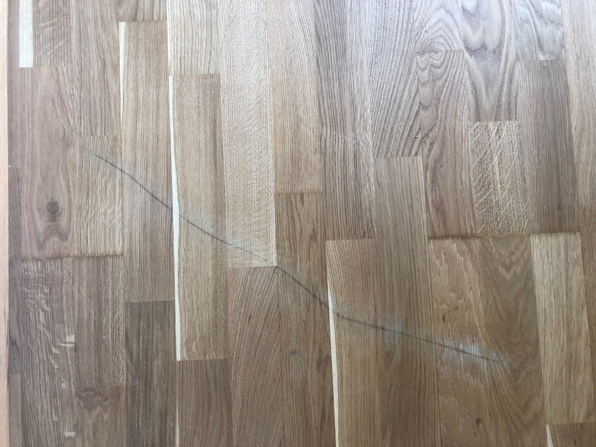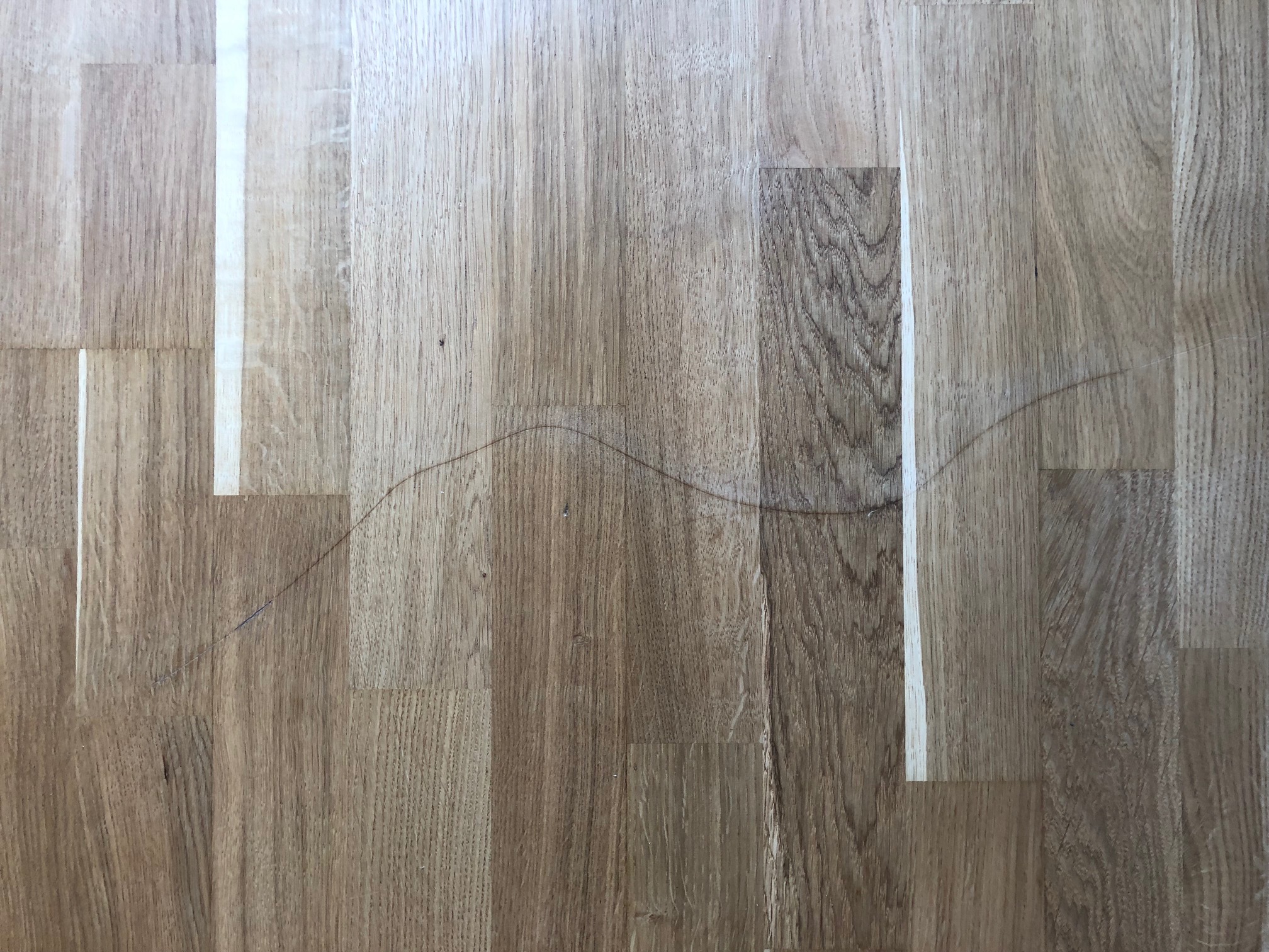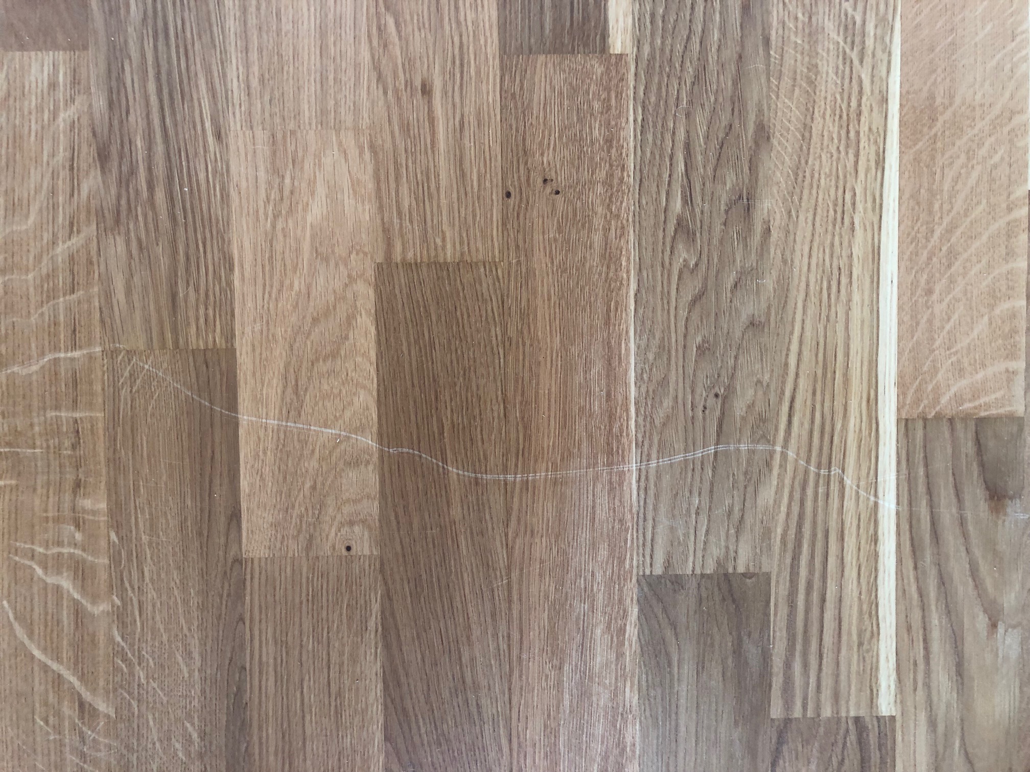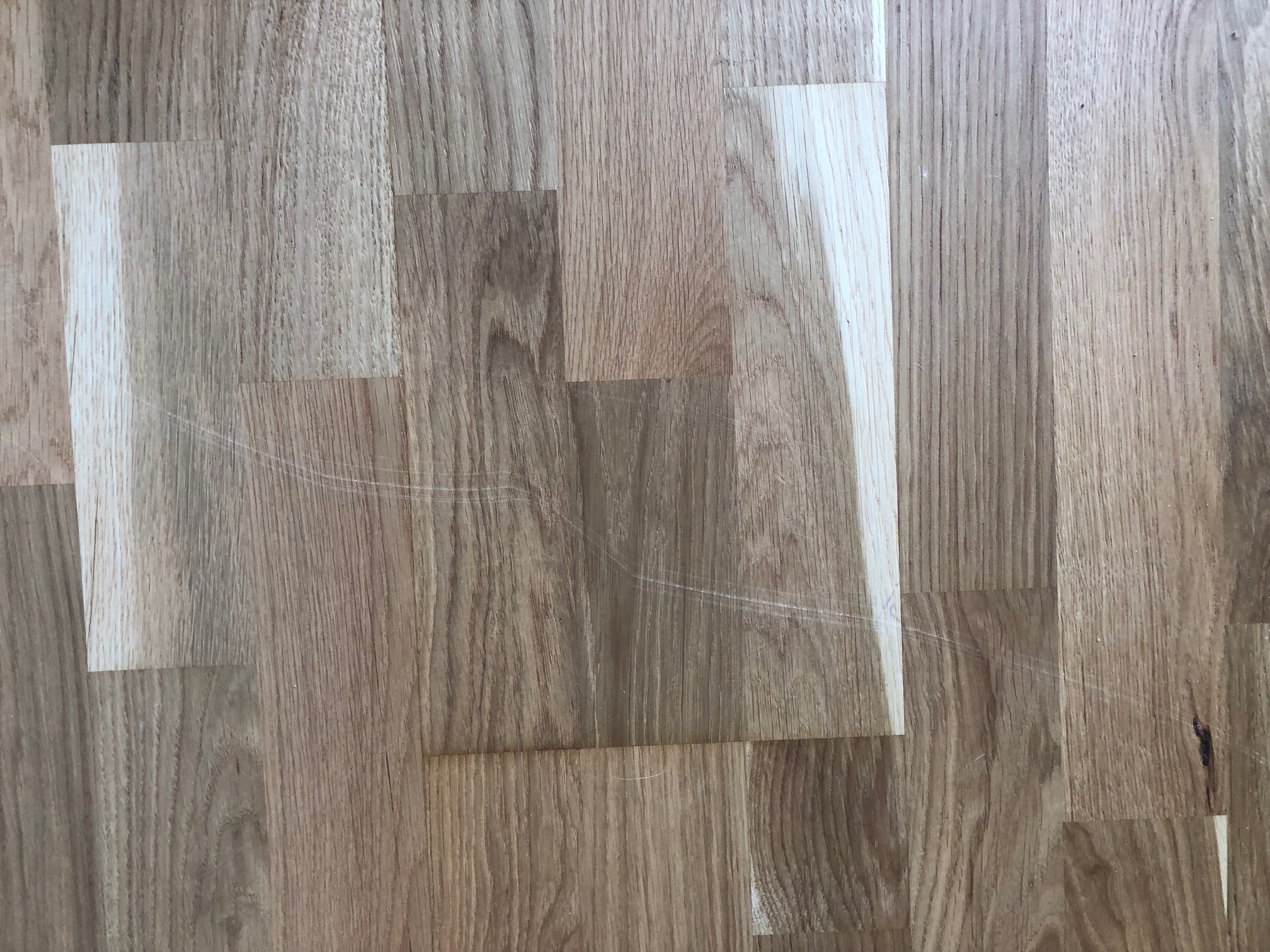 Õlitatud parkettpõrandal 5 ca 25-40 cm pikkuse kriimustuse kohtades taastav õlitamine. Eesmärk, et kriimustused oleksid võimalikult vähe näha.
