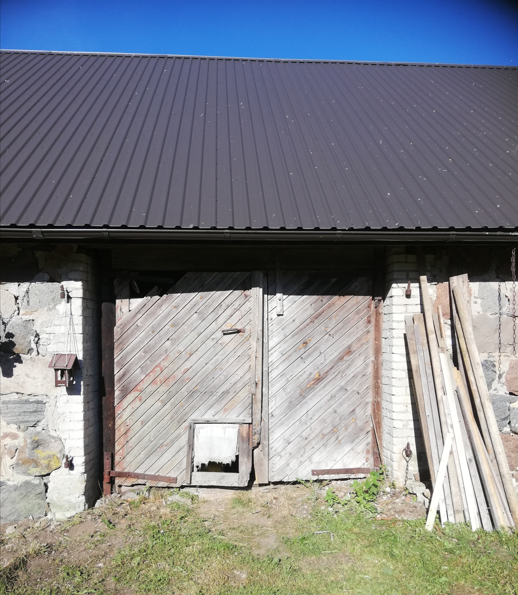 Puidust, laudisega kaetud väravad. Ava mõõt H=2,3 L=2,75 (tööde teostajal üle kontrollida enne tööde algust). Valmistada kaheukseline täiskõrguses komplekt, koos kinnitusraamiga ja väljastpoolt kaetud kalasaba laudisega. Ühe ukse lukustus seestpoolt riiviga (ülalt ja alt). Esmalt avatava ukse lukustuse lahendus palun tööle kandideerija välja pakkuda. Kuna ukseava kohal asetsevad ka katusesarikad, tuleb ka need toestada.