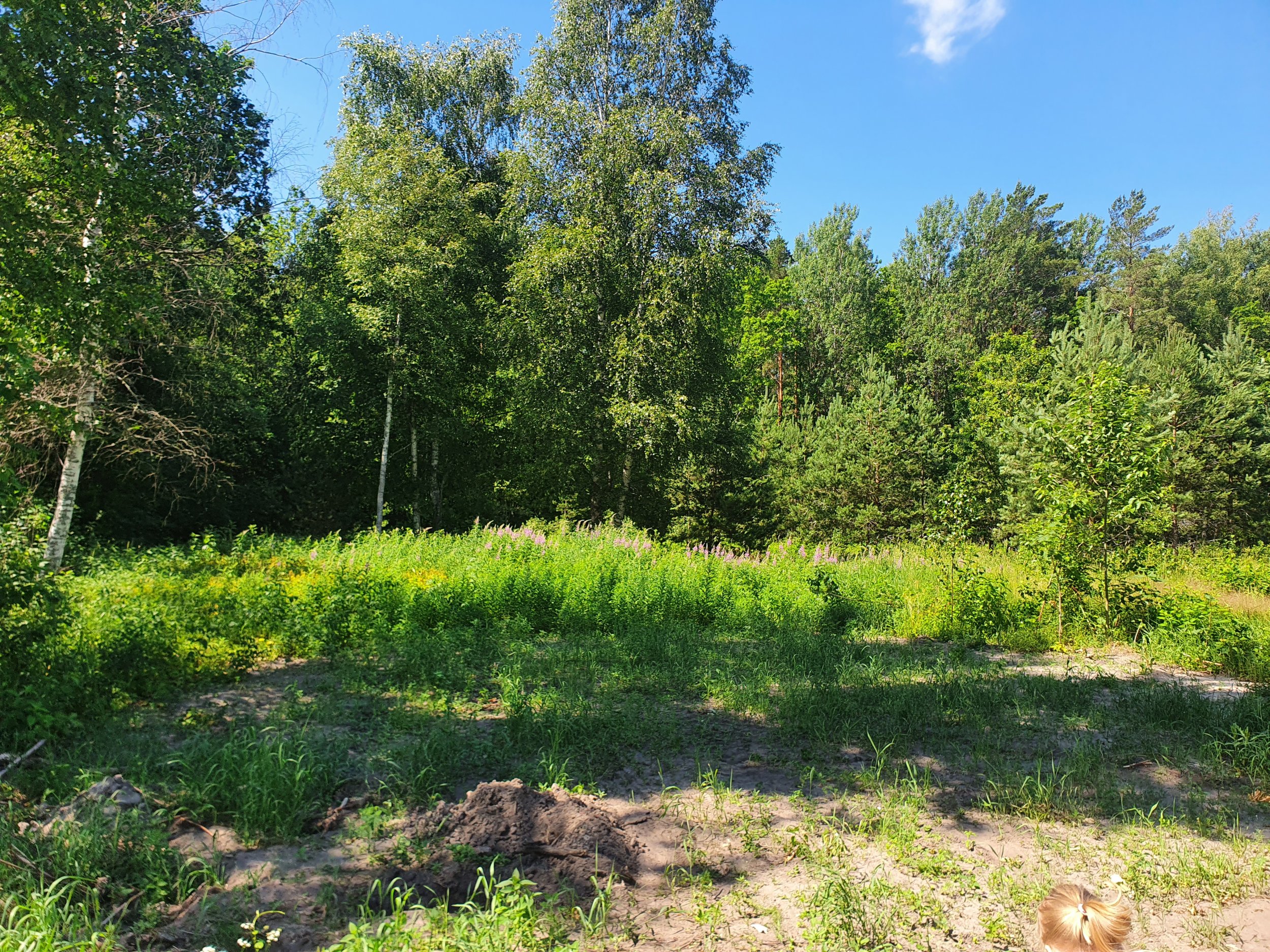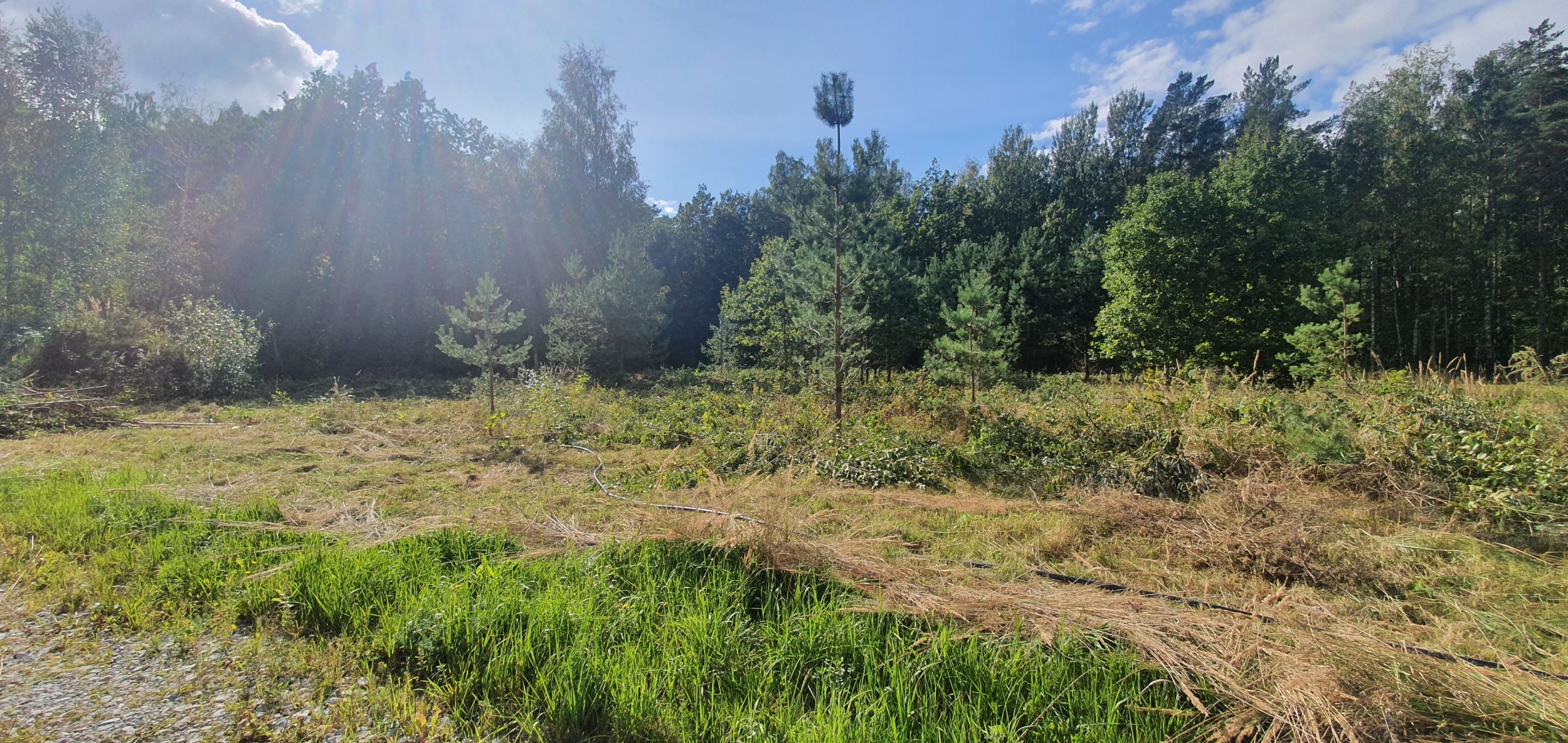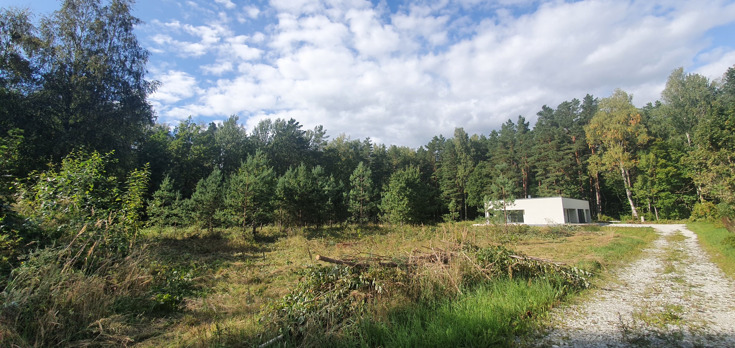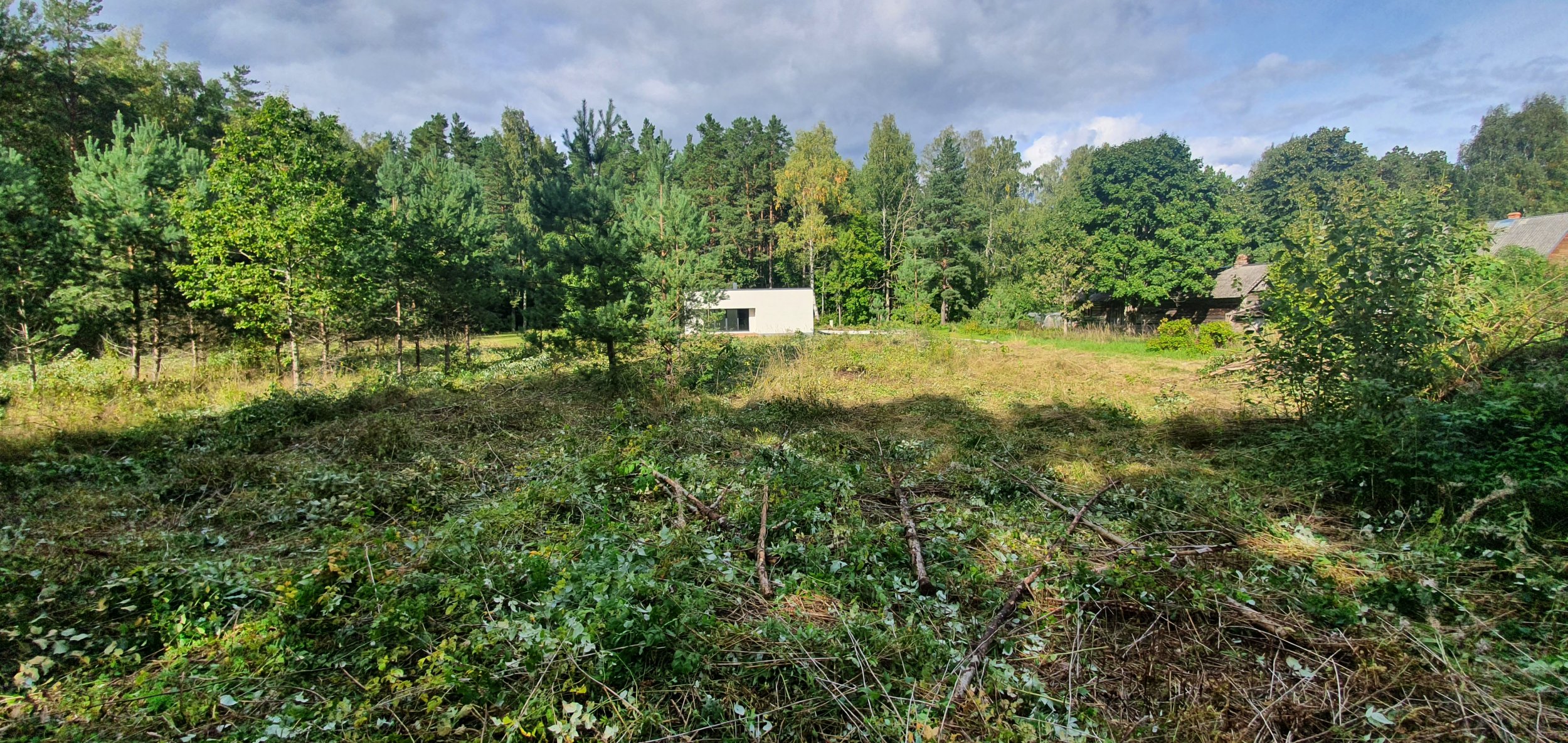 Krundile jääb osaliselt puid. Pildil on männid mida tööde algusajaks enam ei ole, nendest järele jäänud kännud tuleks juurida.