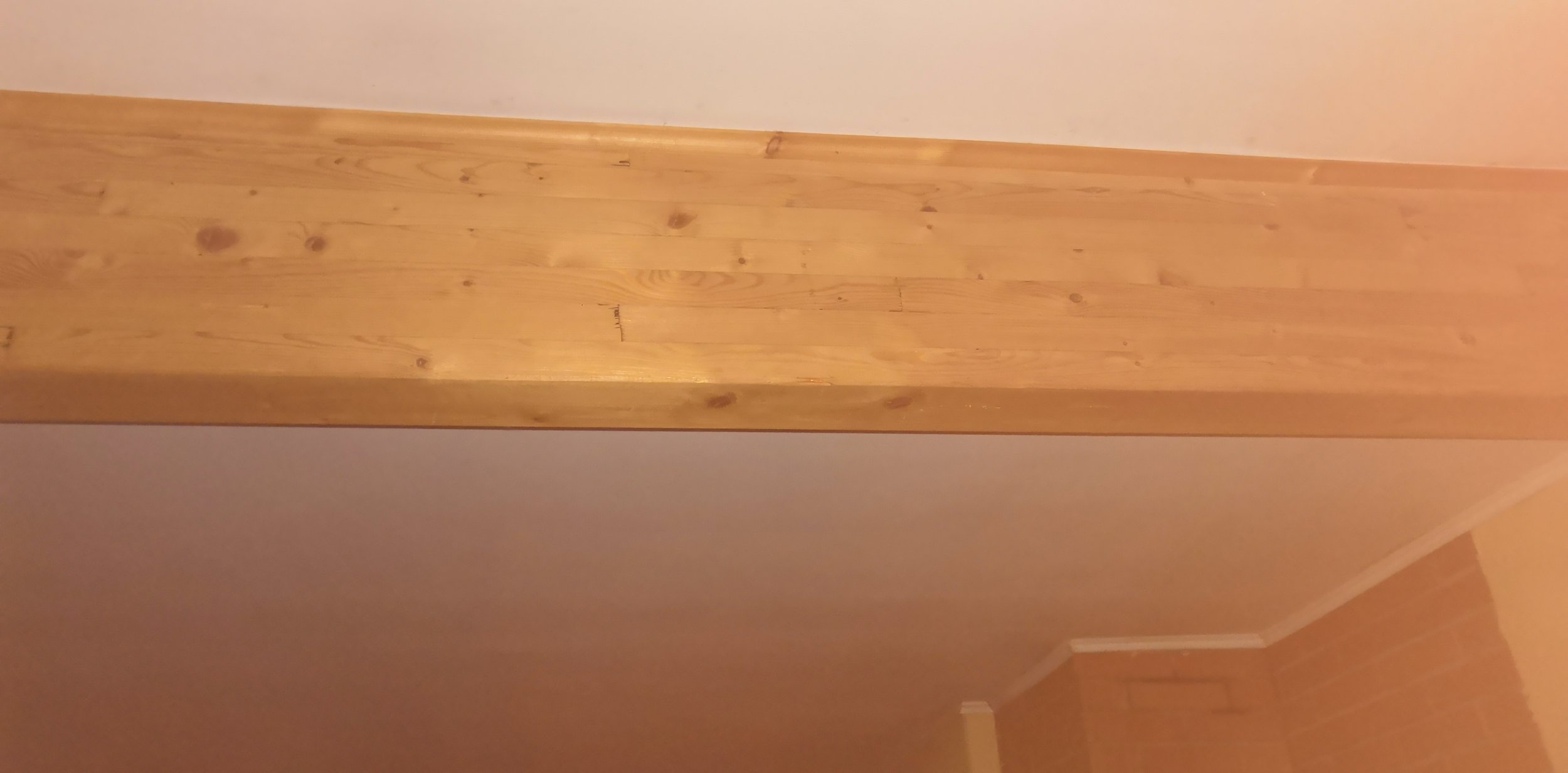 Sanitaarremondi käigus elutoa koos köögiga ja esiku lagede värvimine. Lagi kipsplaatidest, liitekohtades väiksed praod. Suurim pragu näha fotol. Vajalik piirnevate pindade teipimine (sh puidust laetalad) ja põranda katmine. Värvitav pind ca 70 m2.
