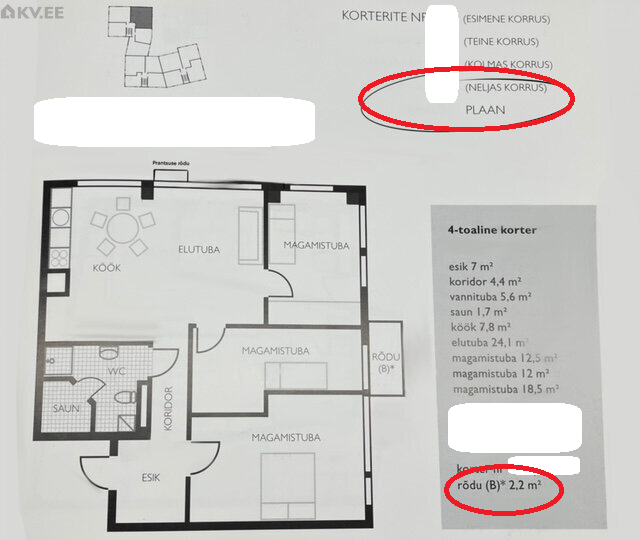 Korter on 3t. Magamistoa mis on plaanil keskel ei ole