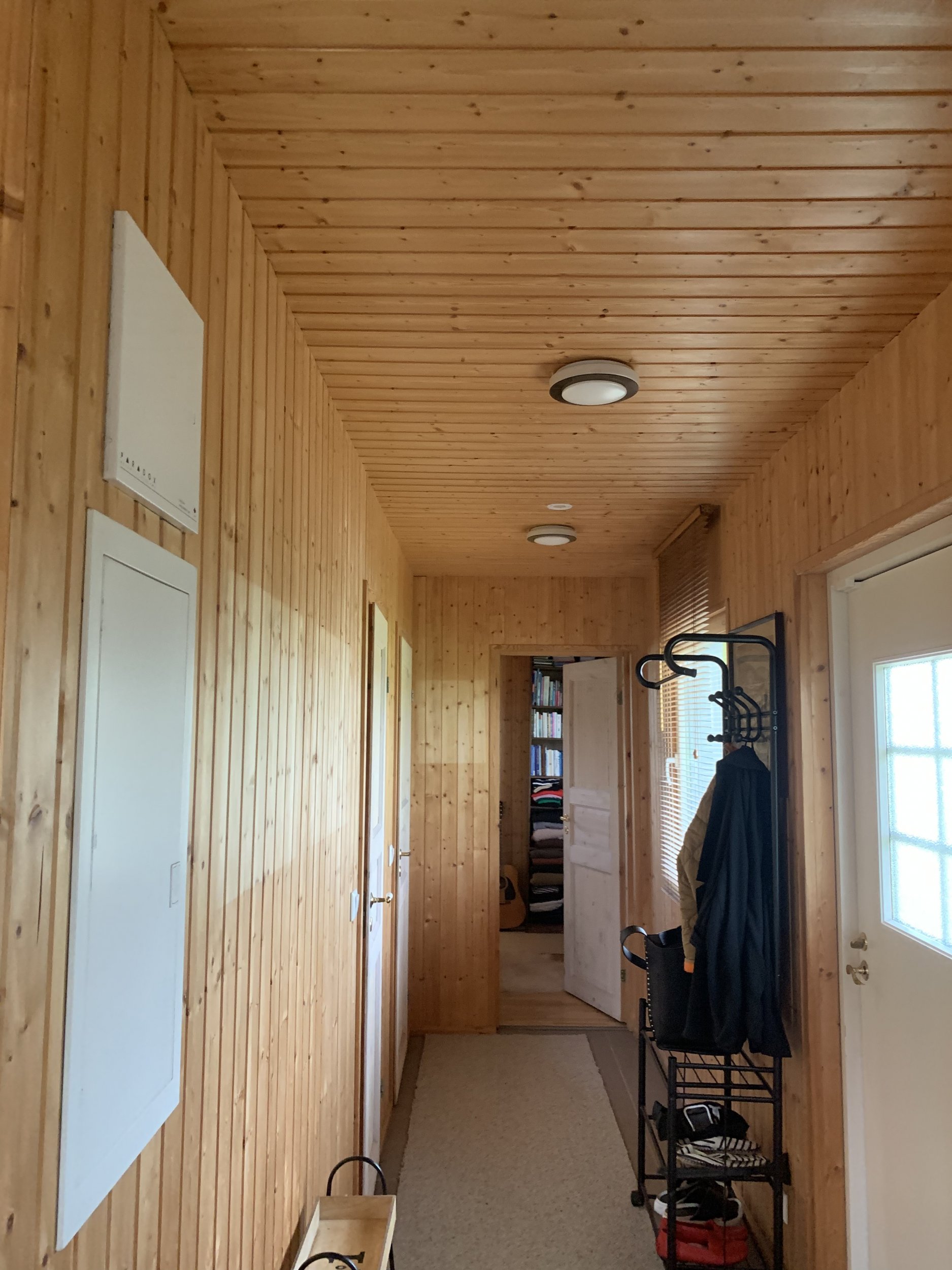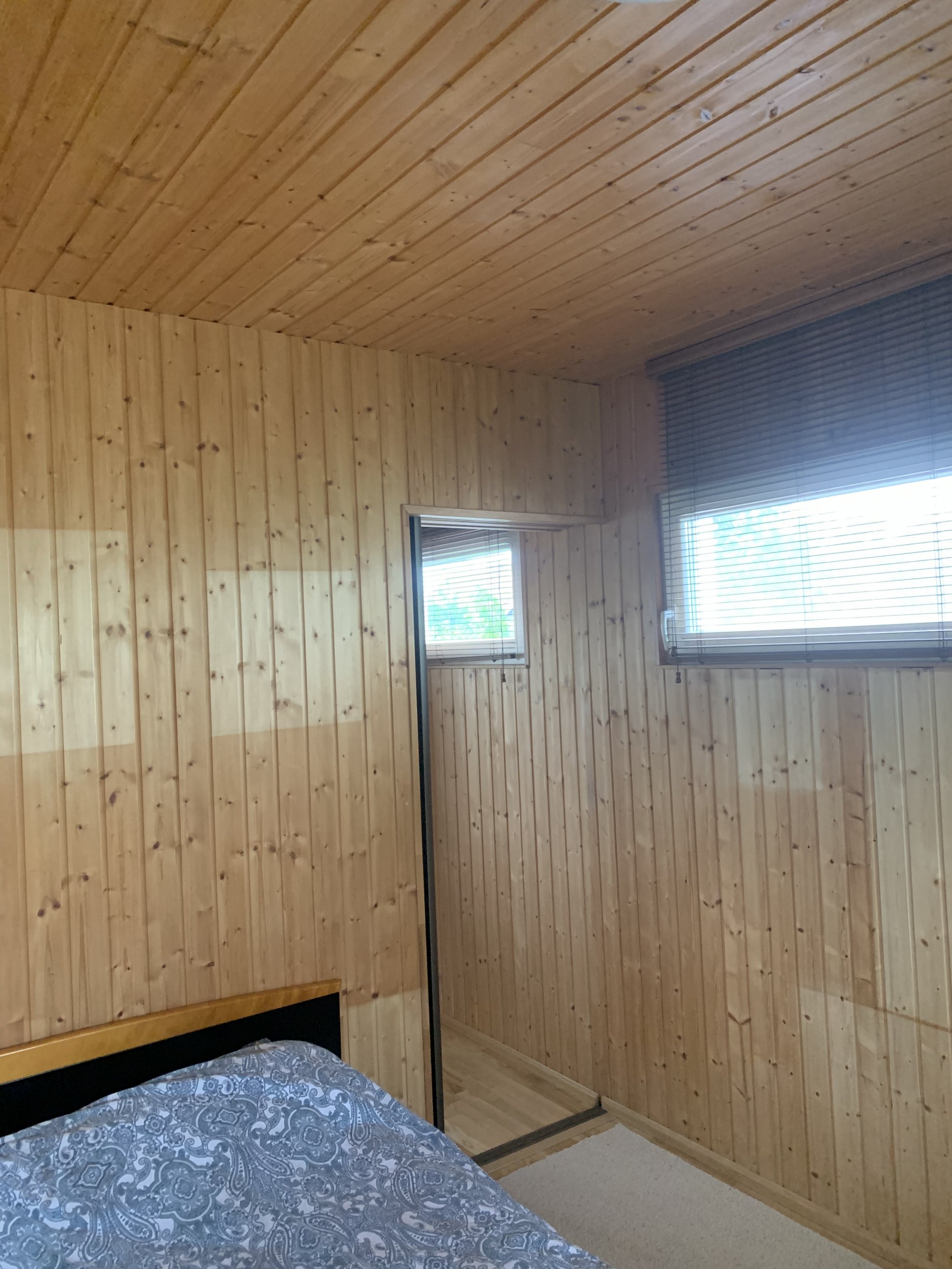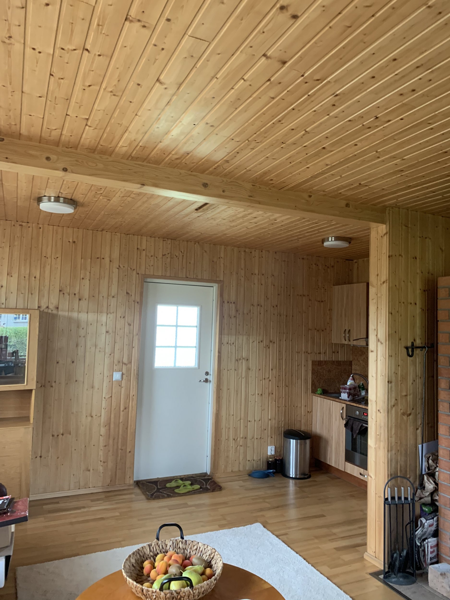 Seintes ja lagedes olev puit ûle lakkida/peitsida valgeks.