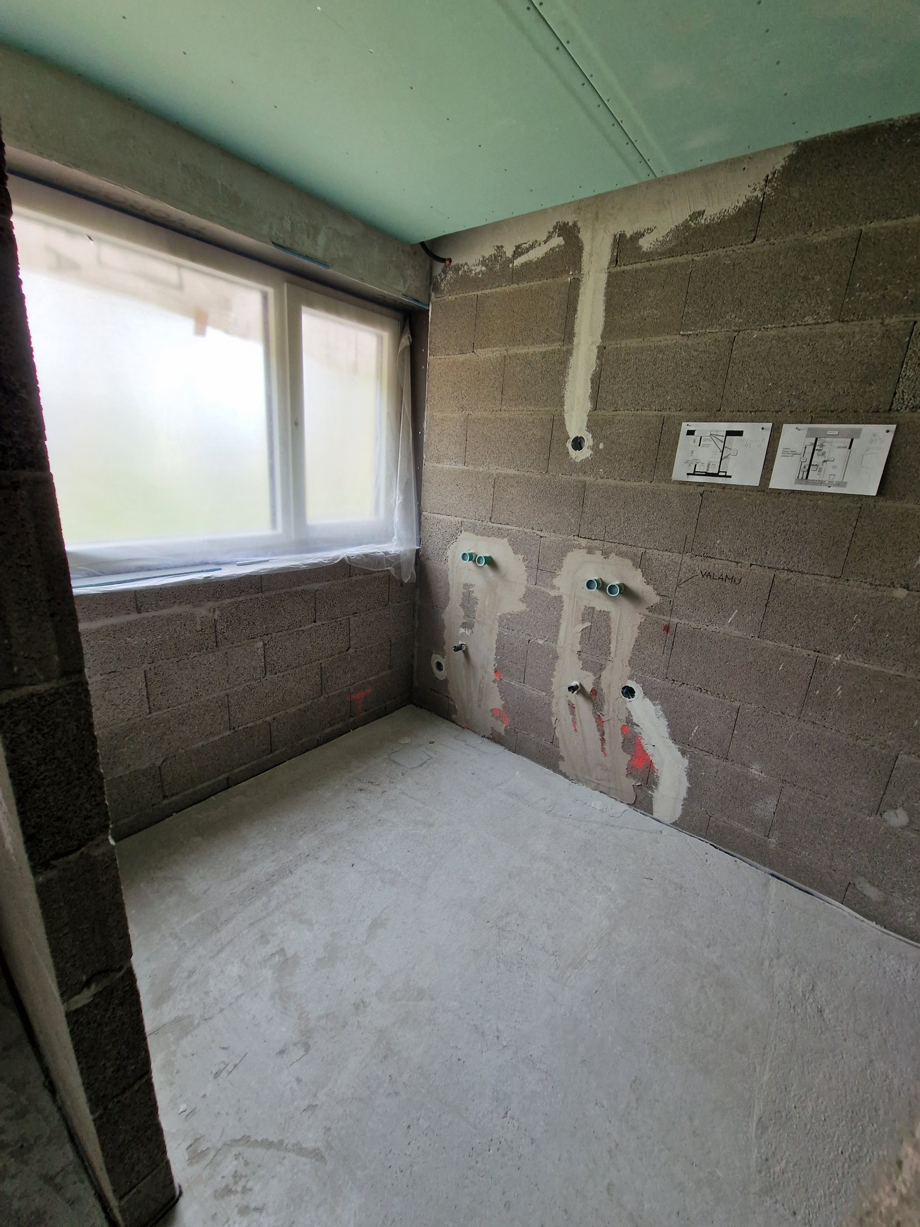 Ehitusjärg hetkel selline, et krohvitööde võimalik alustada 1 nädala jooksul.