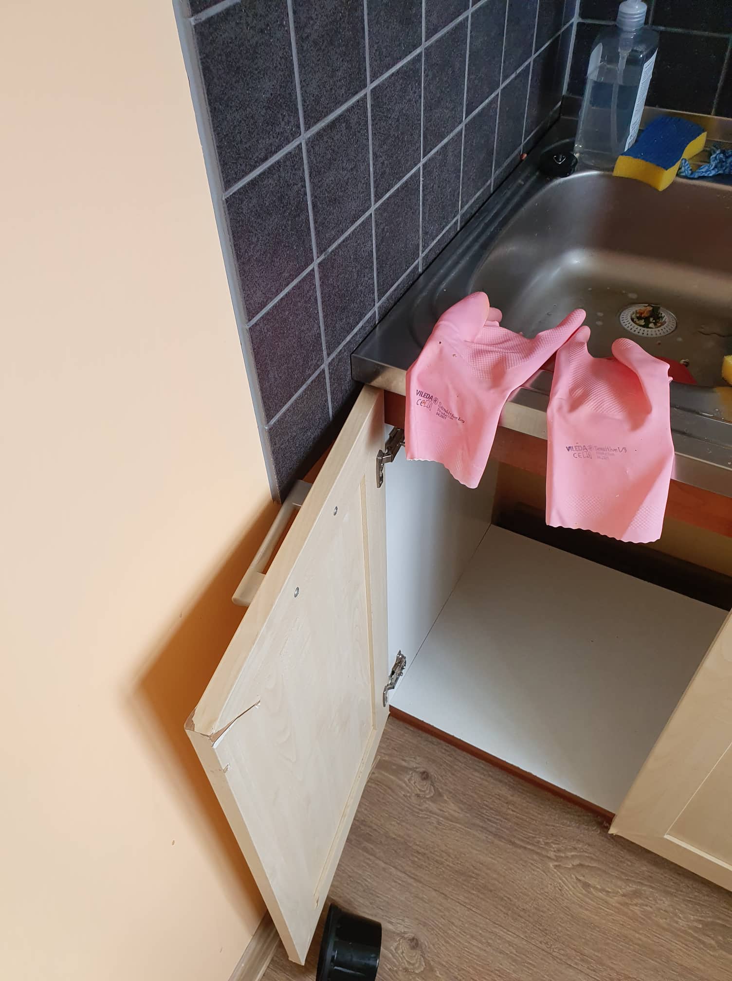 Köögi valamukapi taha on tekkinud kipsplaadile hallitus. Ilmselt tuleb kahjustunud osa asendada uuega. Võimalik, et välja tuleb vahetada ka kahjustunud osa põrandast. Lisaks tuleks teha midagi selleks, et edaspidi niiskuskahjustust ei tekiks.