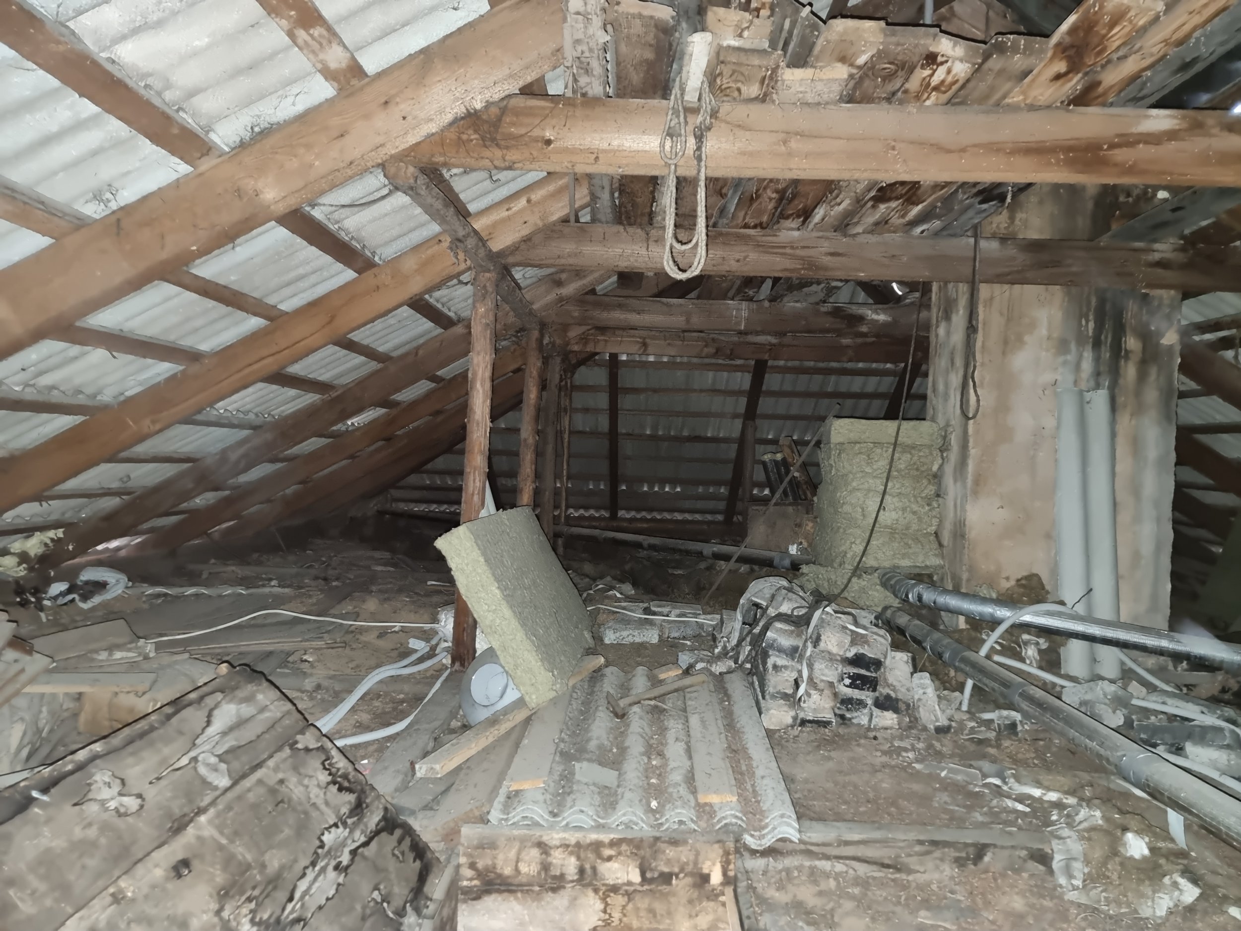 Eterniitkatuse vahetus. Ehk siis vana eterniidi ja roovituse eemaldamine ja seejärel uus roovitus, kangas, eterniit, harjaplekid ja uus katuseluuk. Vana materjali utiliseerimisega saame ise hakkama.