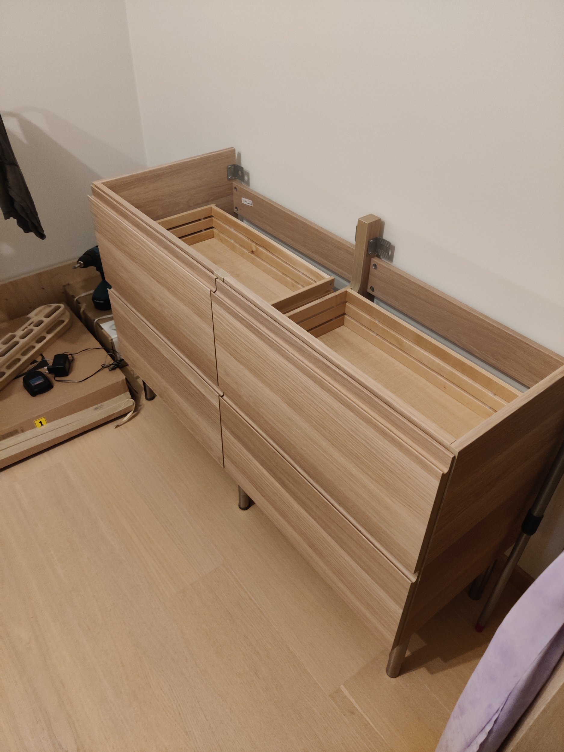 Vannitoas valamu seinast ära võtmine ning selle asendamine valamukapiga (mis on kokku pandud) aga oleks vaja seina kinnitada. Lisaks on vaja ära vahetada valamu äravool, et valamukapp ära mahuks (uut äravoolu olemas ei ole, sest et ei tea milline sobiks). Kapi peale tuleks paigaldada töötasapind ning selle peale uus valamu ja segisti. (Nõuab töötasapinnale kahe augu tegemist valamu äravoolu ja segisti jaoks) Lisaks on vaja seinale paigaldada peegel ning peeglikohale lamp (juhtmed on olemas).