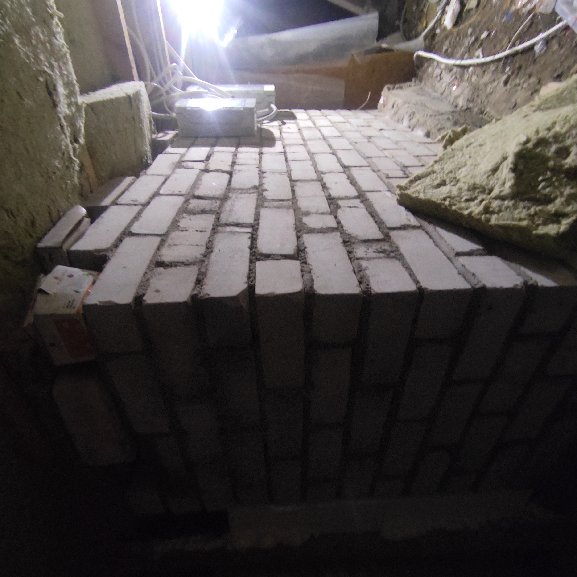 Keldri keskel telliskivimüüritis ristlõikega 2 m2. Kõrgus 1.7 m. See vaja samuti lammutada.