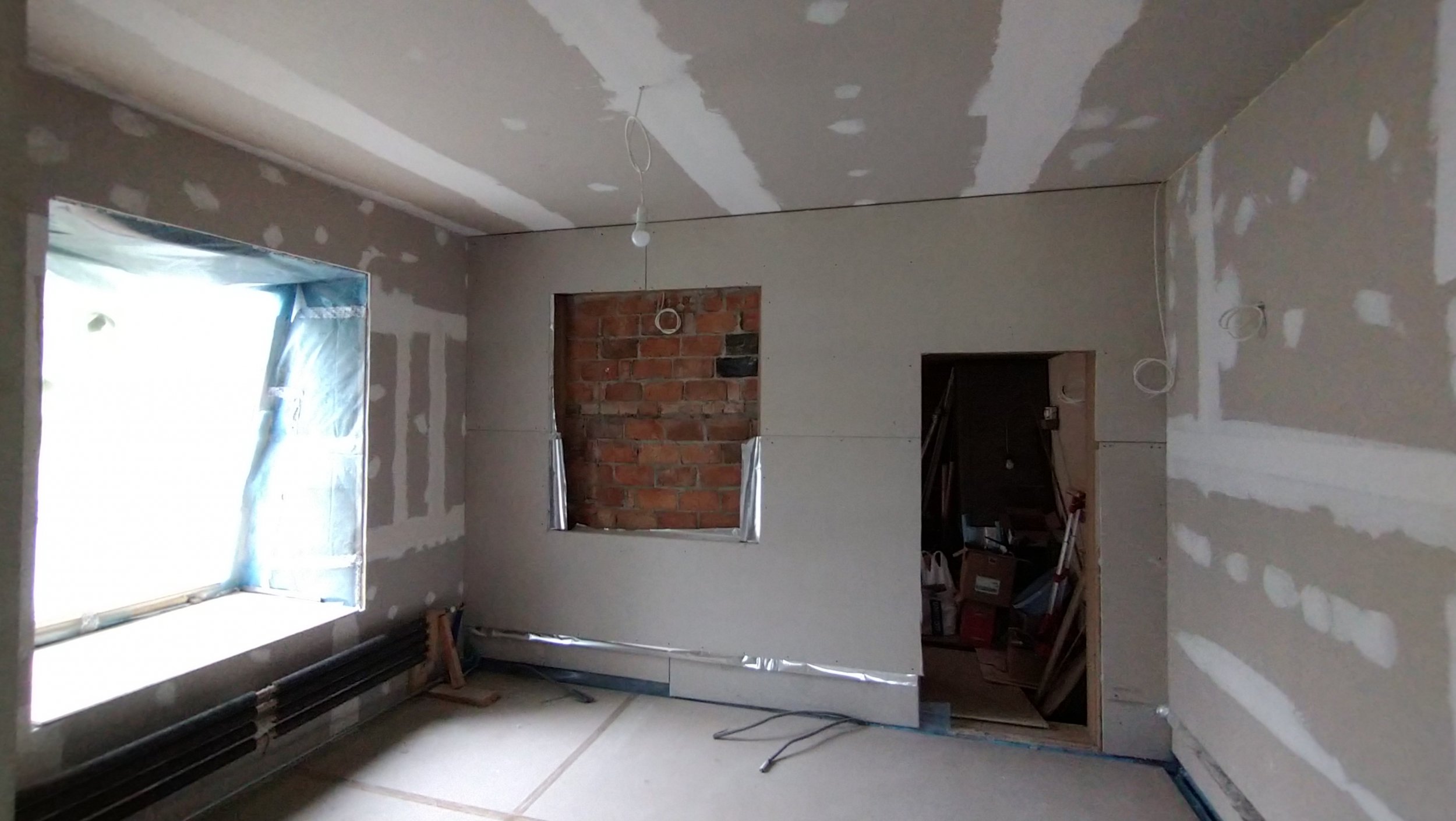 Aluspind: 90 m2 krunditud kipsplaat ja 80 m2 krunditud kipskrohv.