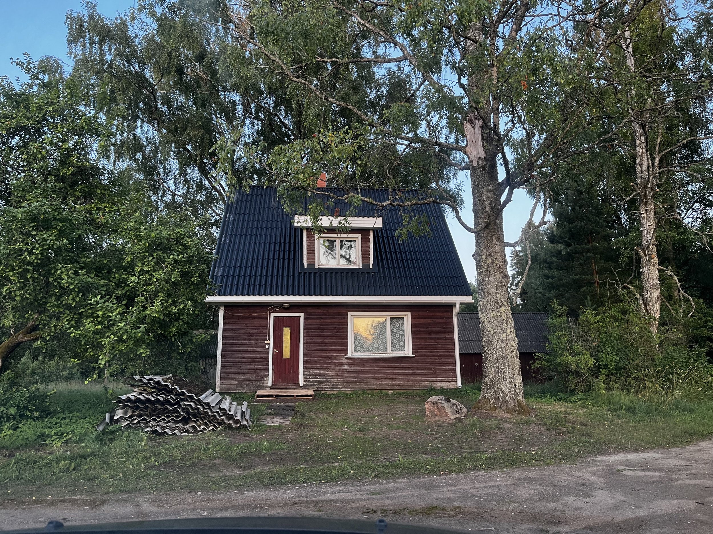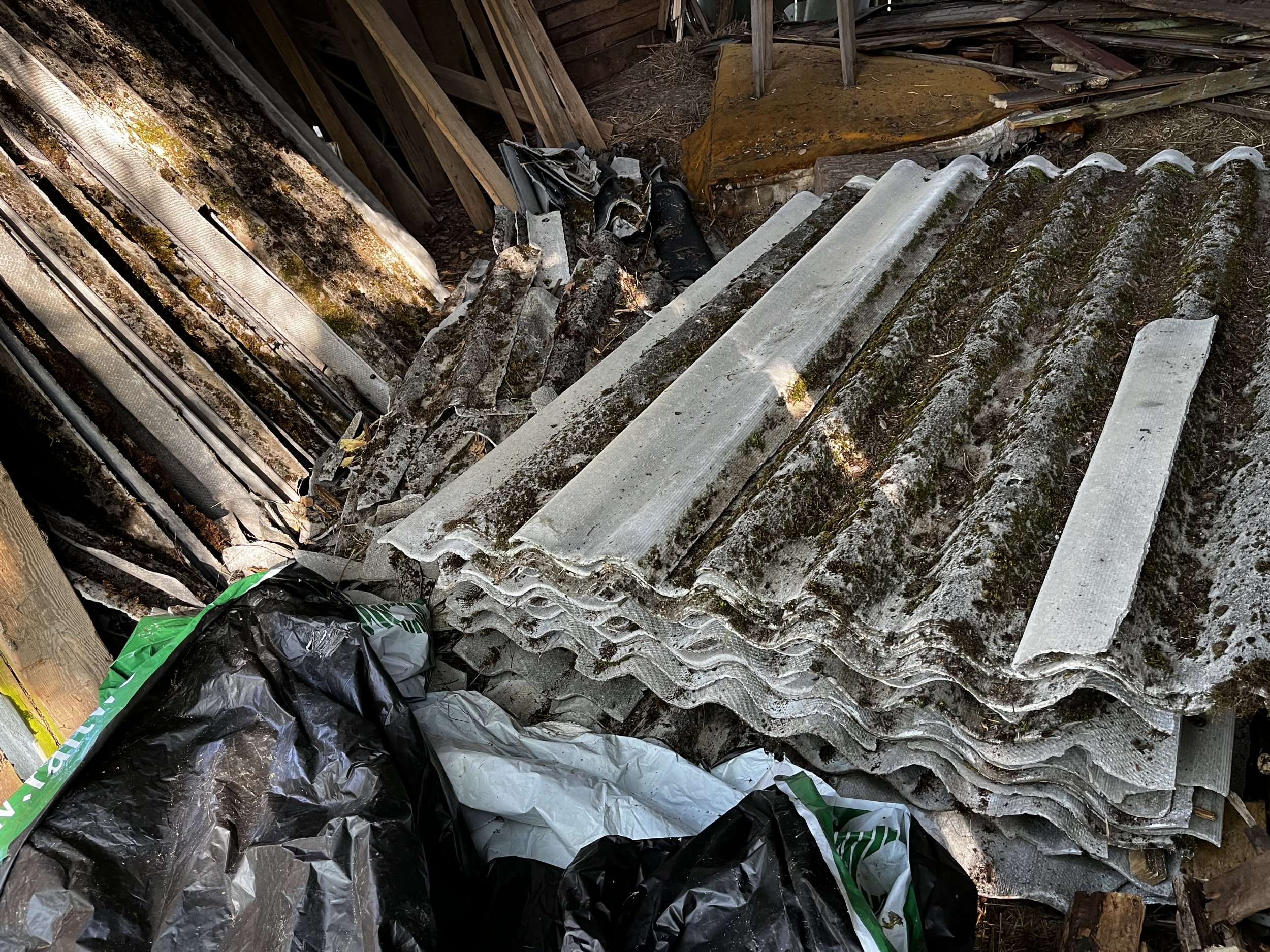 1. eterniidi (peale laadimist kahest kokkukogumispuntist objektil (osa eterniiti veetud küüni alla + osa õuel peamaja ees)