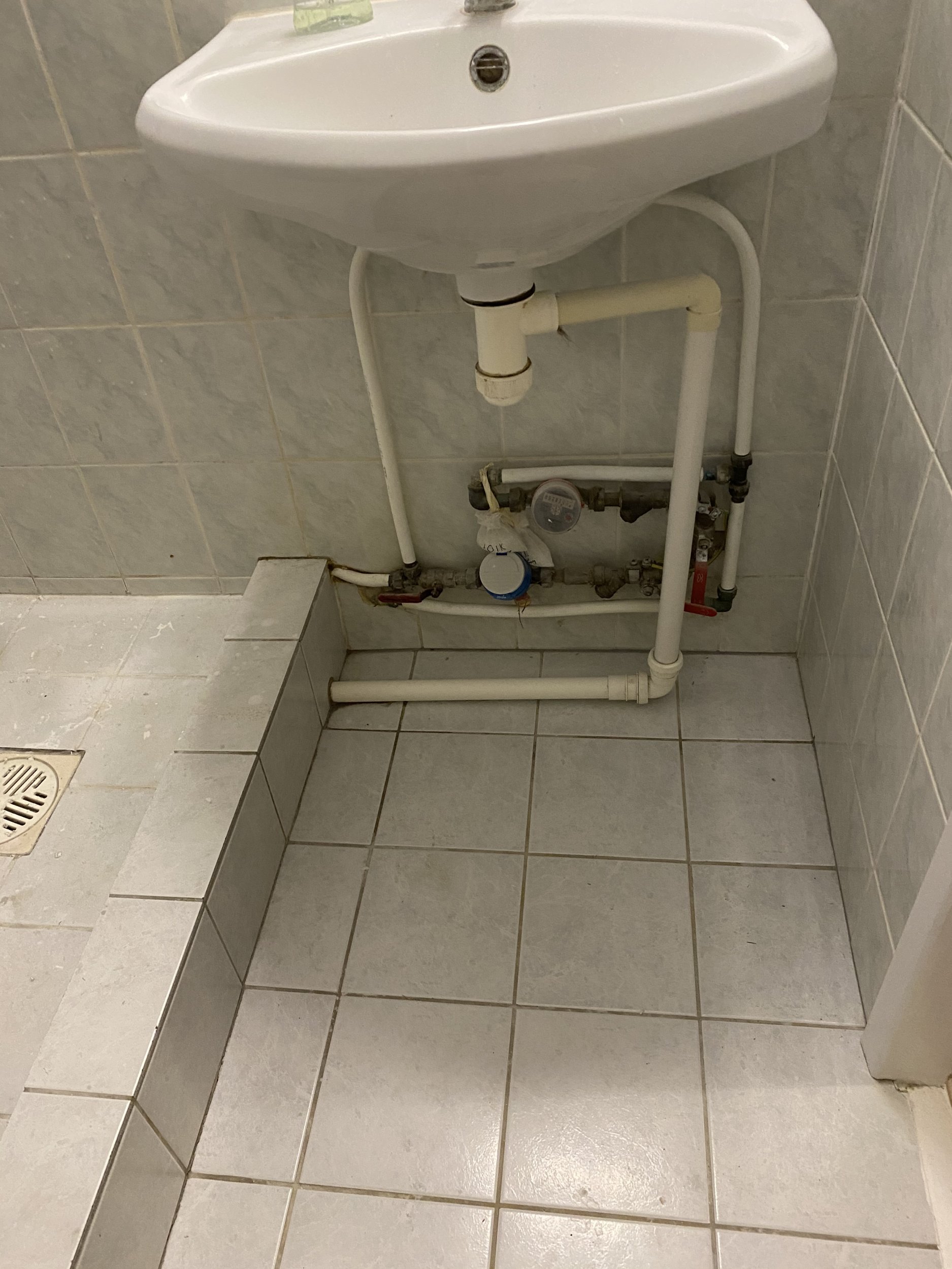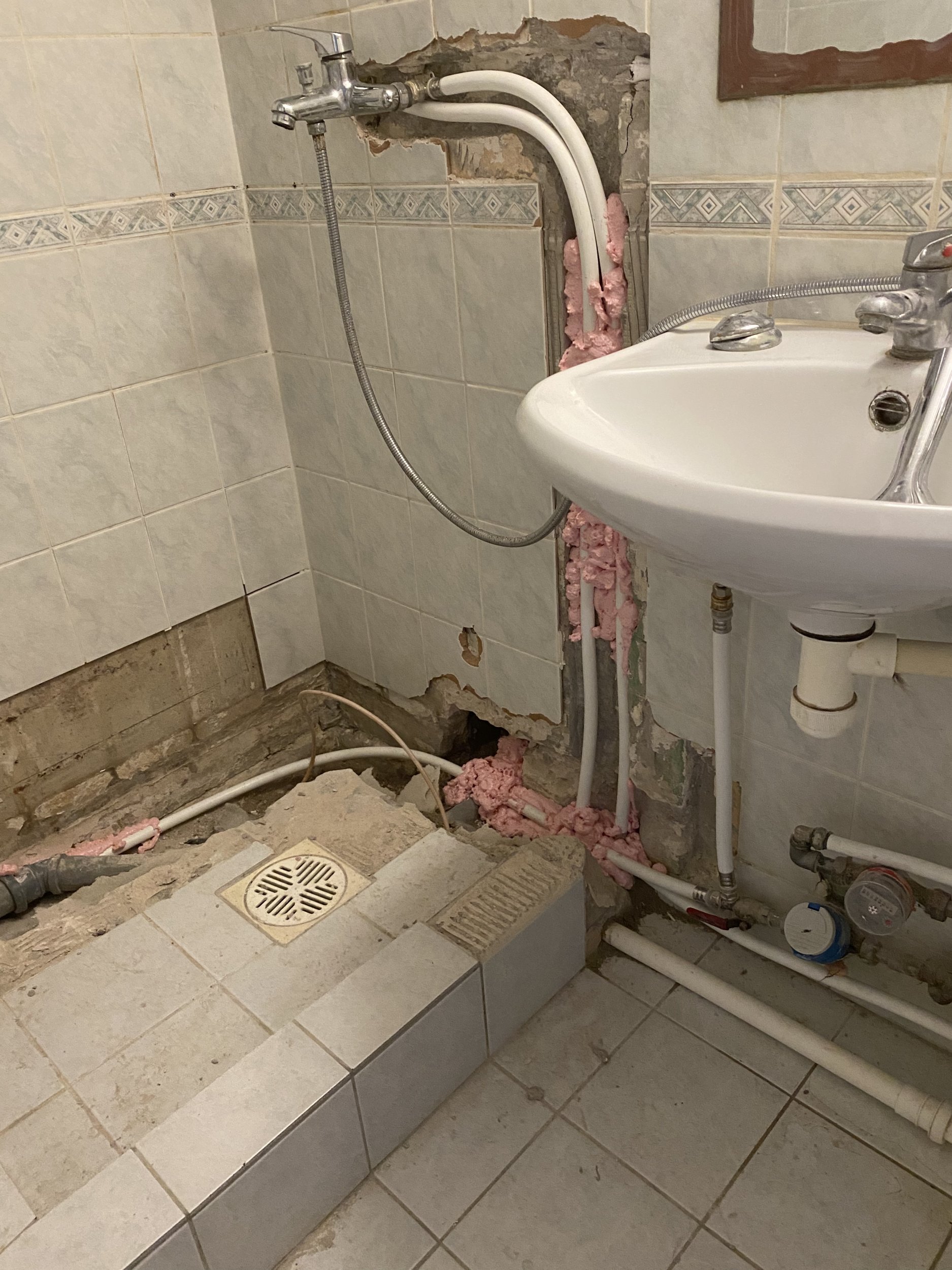 Vanade segistite-kraanikausi, äravoolu resti eemaldamine, uute paigaldamine. Duššiseina paigaldamine (mitte nurga!).