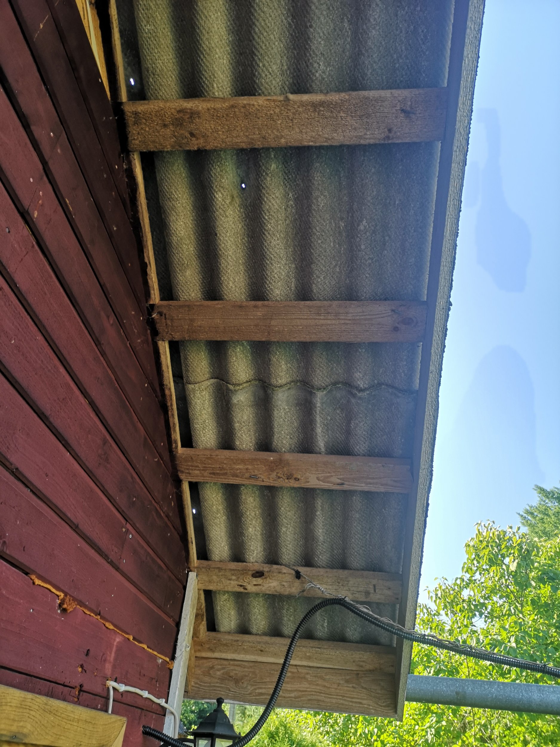 Pakkumine sisaldab laastu ja eterniidi lammutust. Aluskate paigaldus koos distanstliistudega, roovitus, otsalaua ja eterniidi paigaldus. Vihmaveesüsteemi paigaldus, redeli ja aluse paigaldus. |