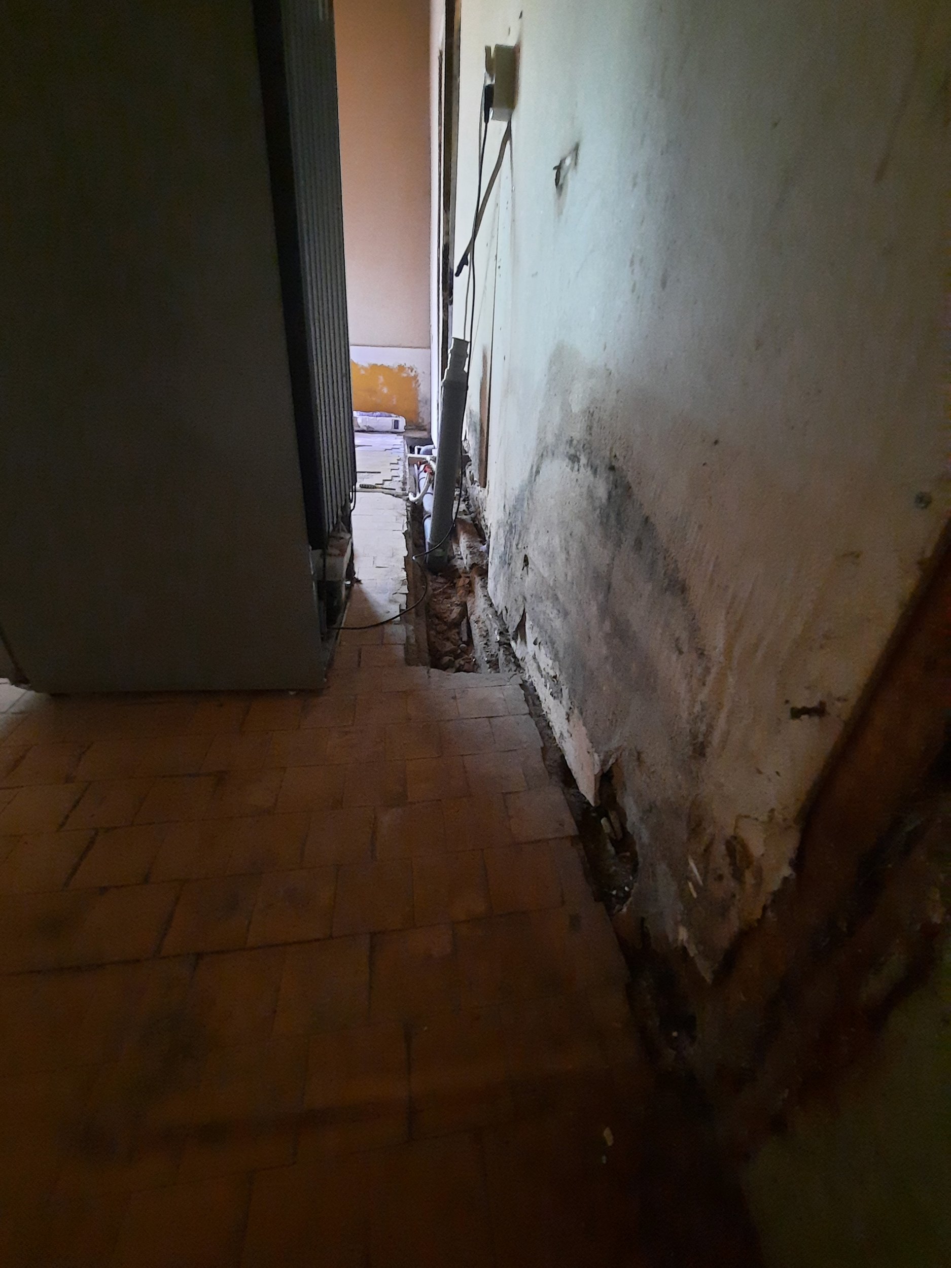 Seinte kontrollimine, vajadusel parandamine, pistikute lisamine ja vahetamine (6 tk, on olemas; + õhupuhasti jaoks ühenduse loomine); seina ja põranda vahelise lõhe (u 25 cm lai, 4,5 m pikk) täitmine (seal asuvad ka vee- ja kanalisatsioonitorud), põranda tasandamine ning katmine kipsivaluga ( u 25 m2); soemüüri puhastamine vanast värvist ja vanade kahhelkivide krobestamine