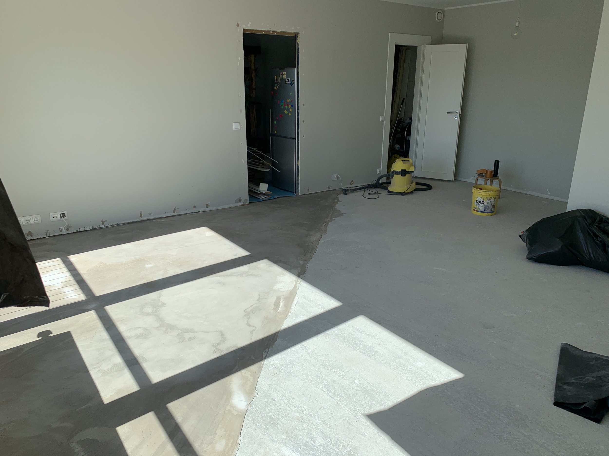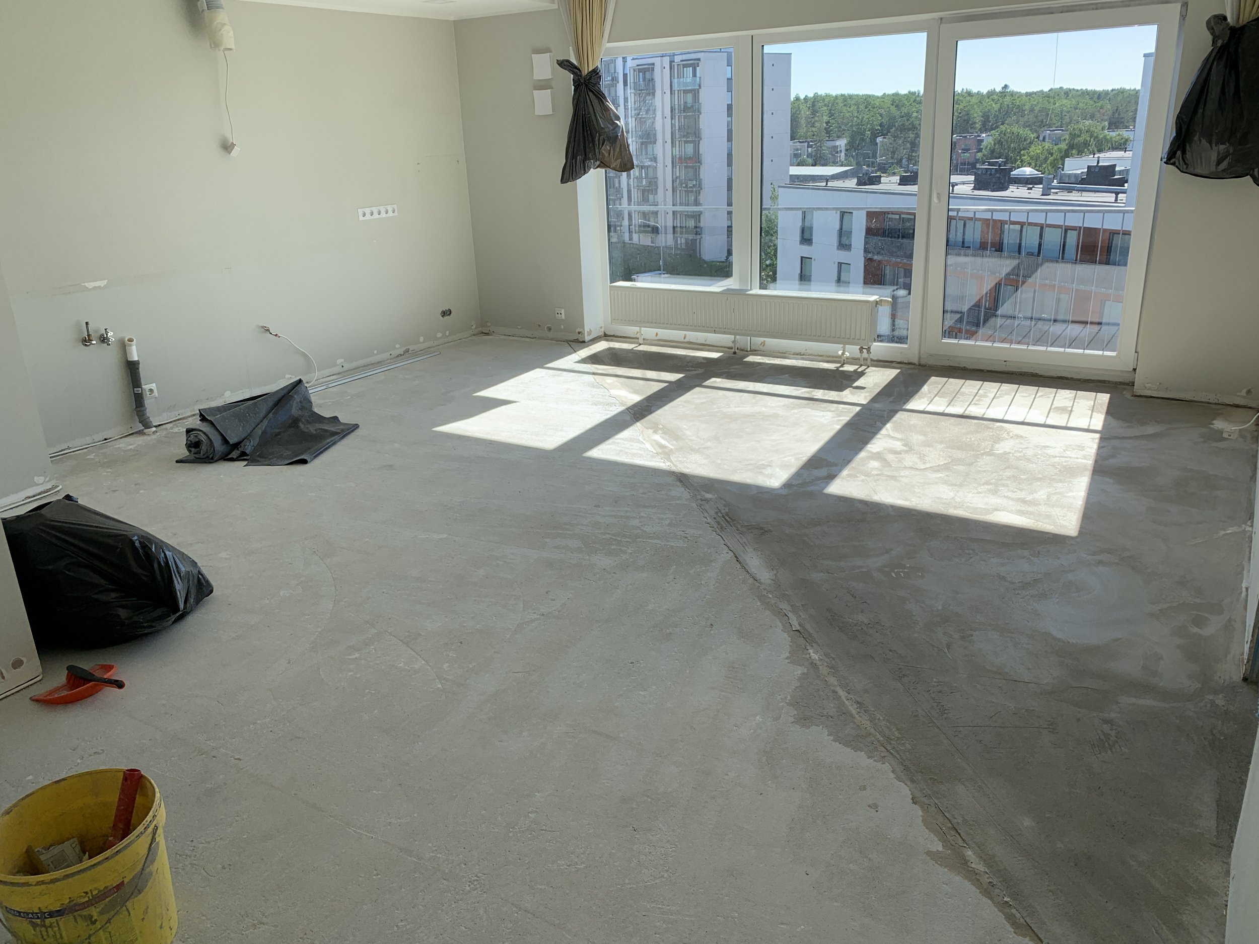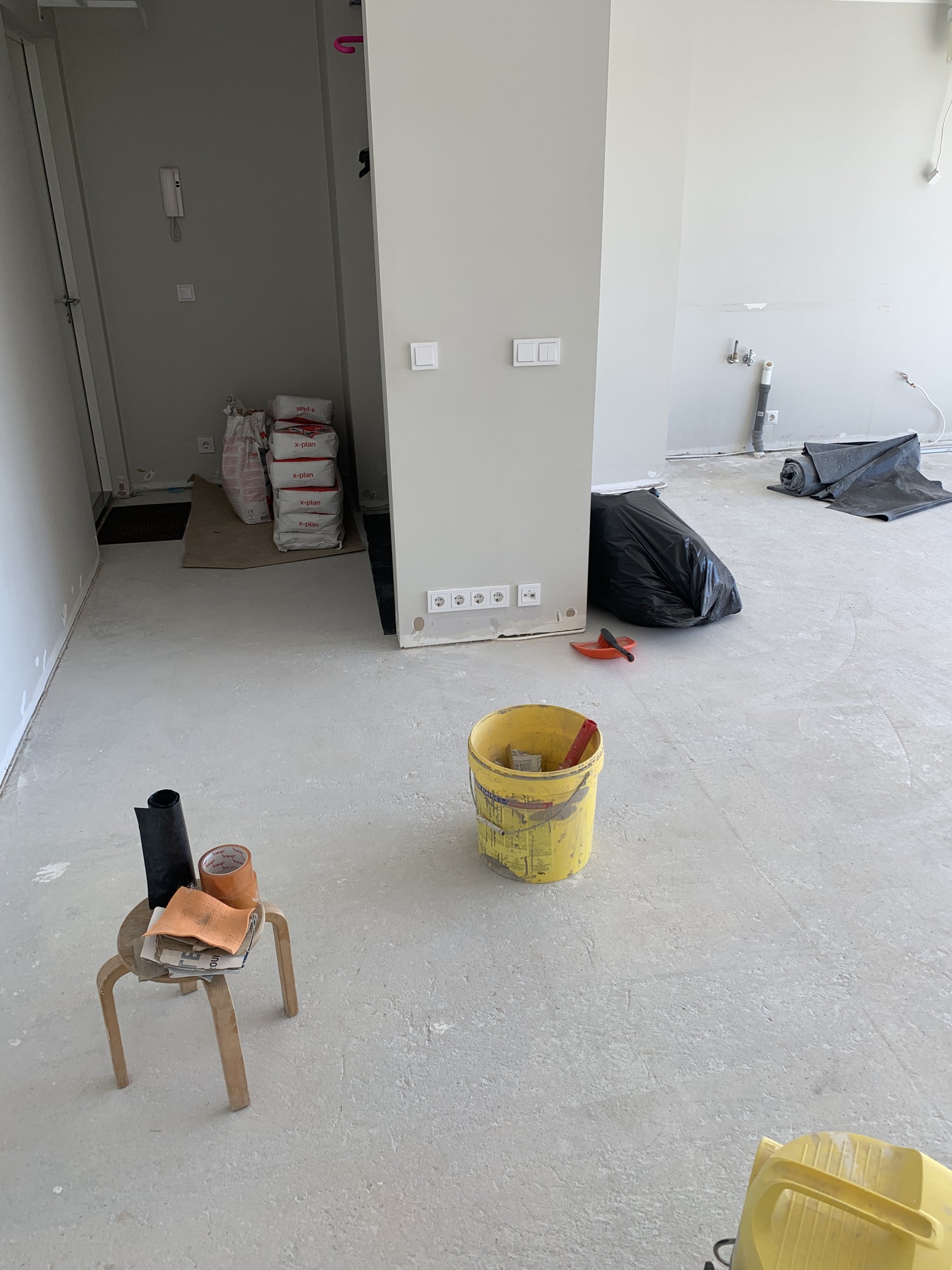 On vaja valida kõige sobivam lahendus. See võib olla nii lihvimine kui ka tasandussegude ja -lahuste kasutamine. Osa korterist oli juba täidetud Mira X-plan mördiga, kuid töö peatati vastuvõetamatu kvaliteedi tõttu.