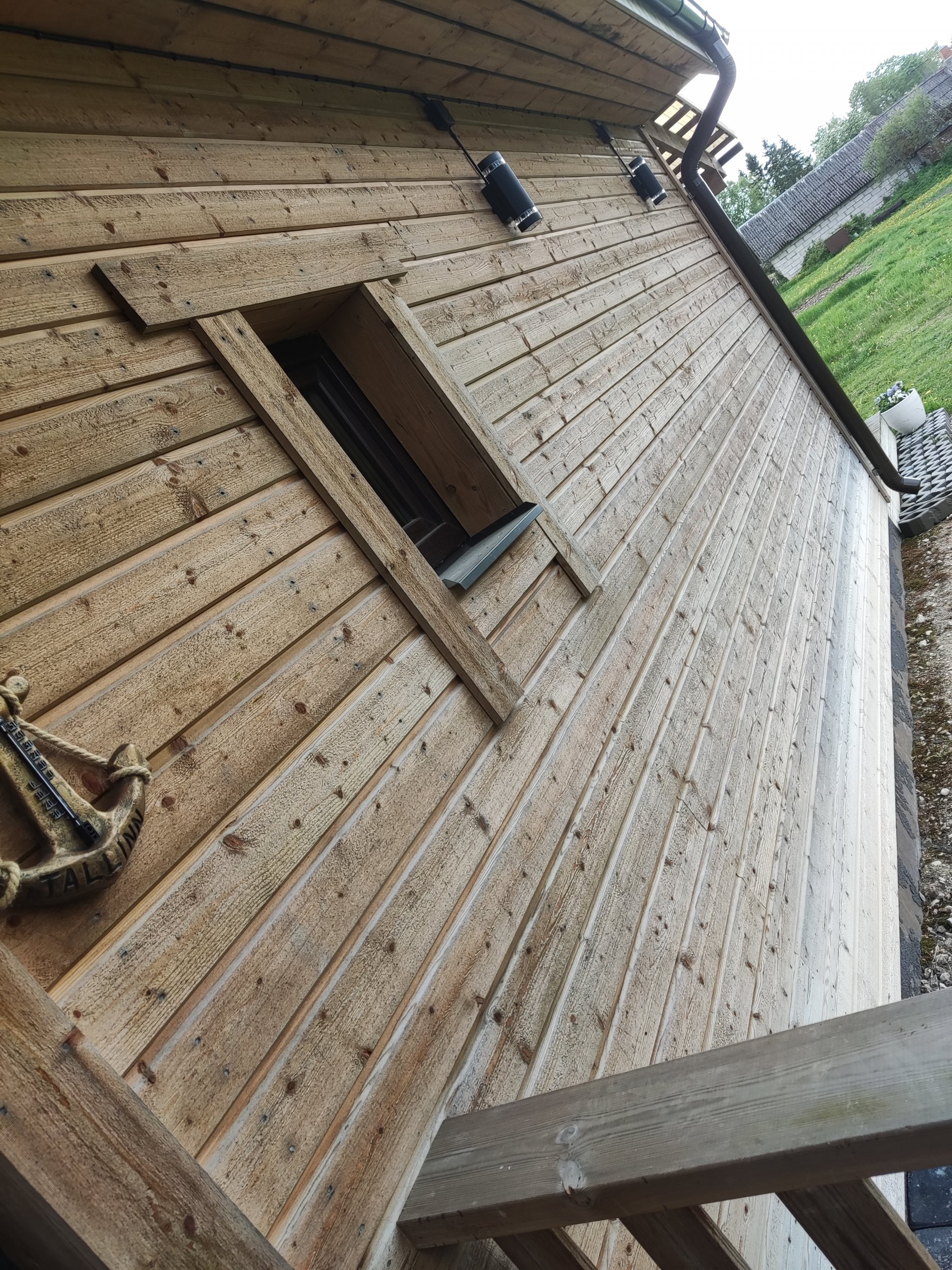 Sooviksime teostajaga kohapeal kokkuleppida,kas värvimine maja või õlitame. tõenäoliselt oleks kohati vaja puitpindu puhastada,esineb rohekat tooni.