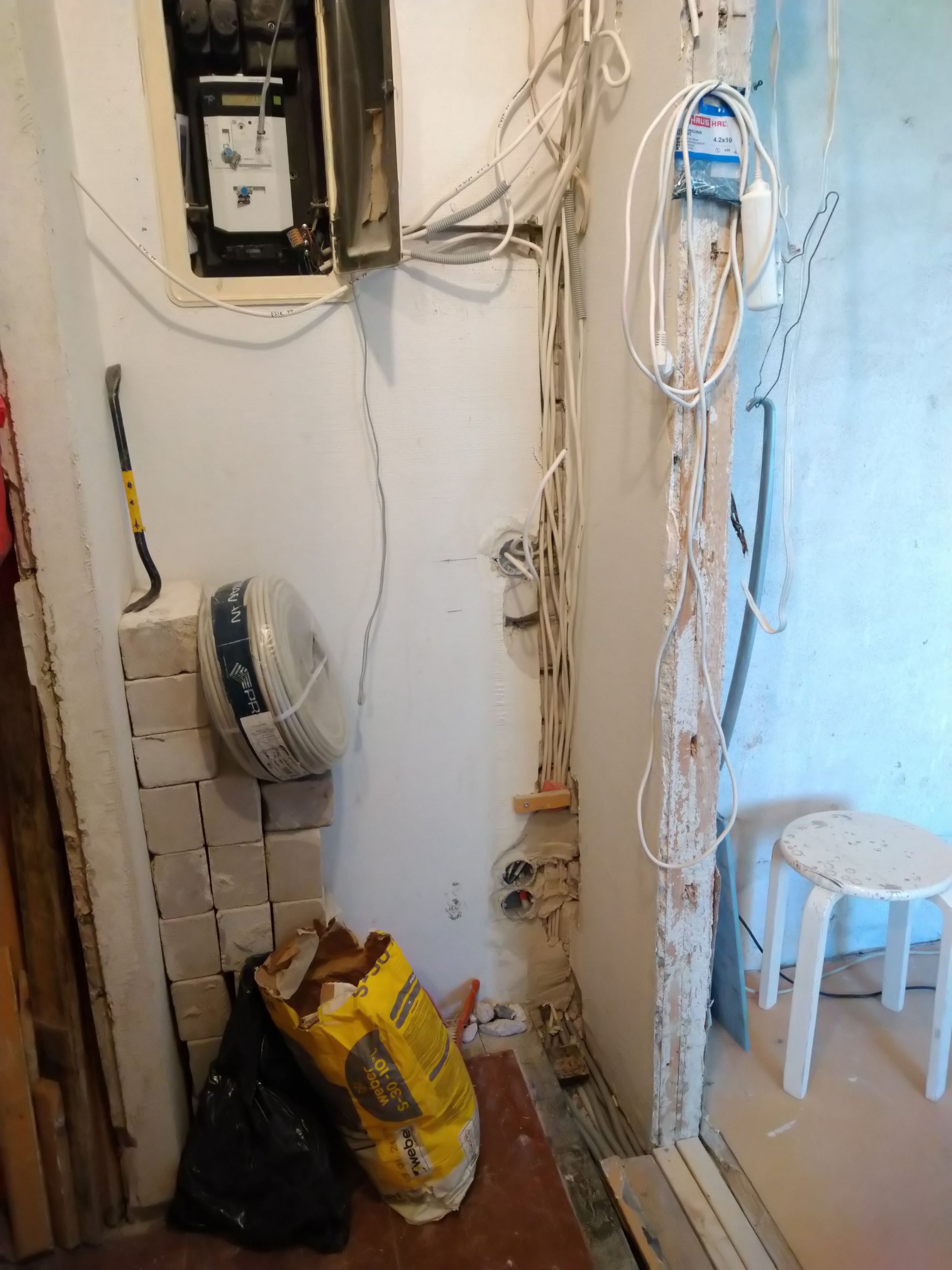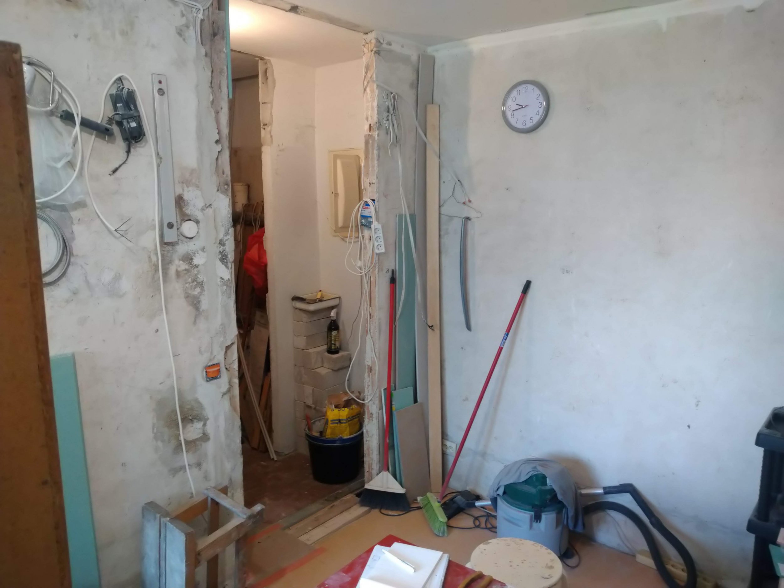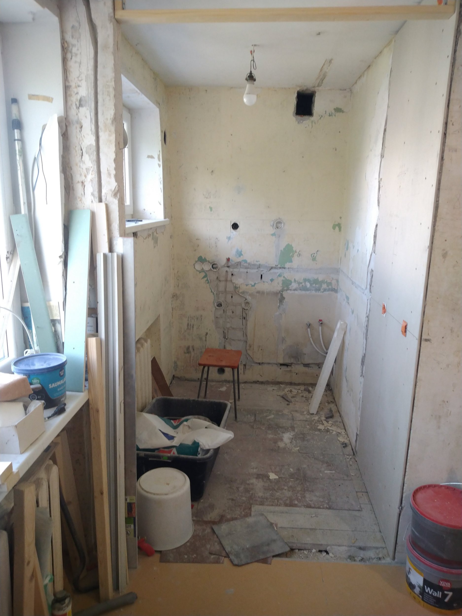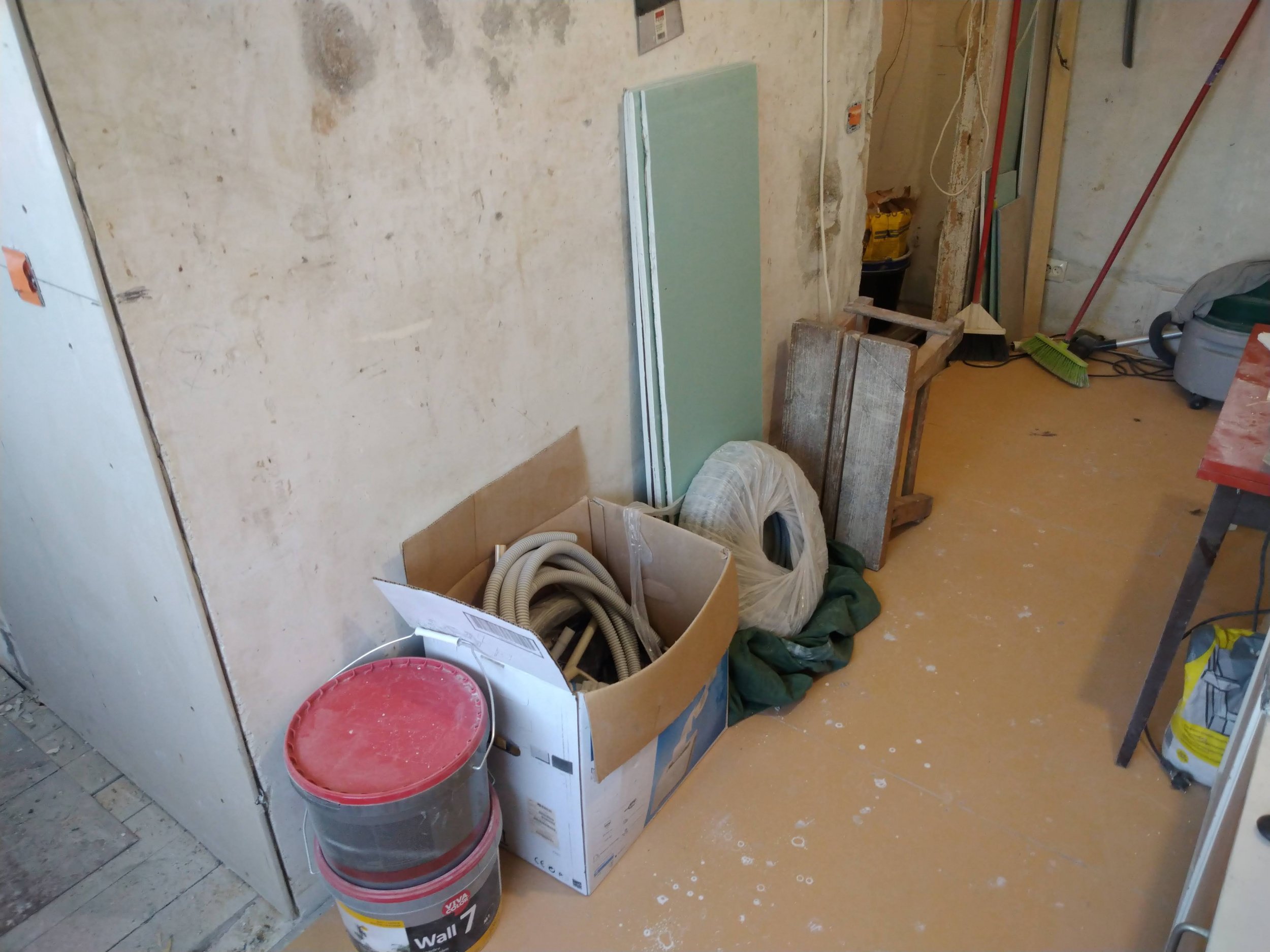 Teha seinte krohviparandused ja tasandused. Uue kaabelduse vaod ja muud sellised tühimikud täita ja suuremad lohud siluda. Kuna maja on NSVL soldatite ehitatud, siis mõned nurgad jäävad vedi kõveraks. Kuid üldine mulje peab jääma korraktne ja endiste usteavade nurgad sirged.