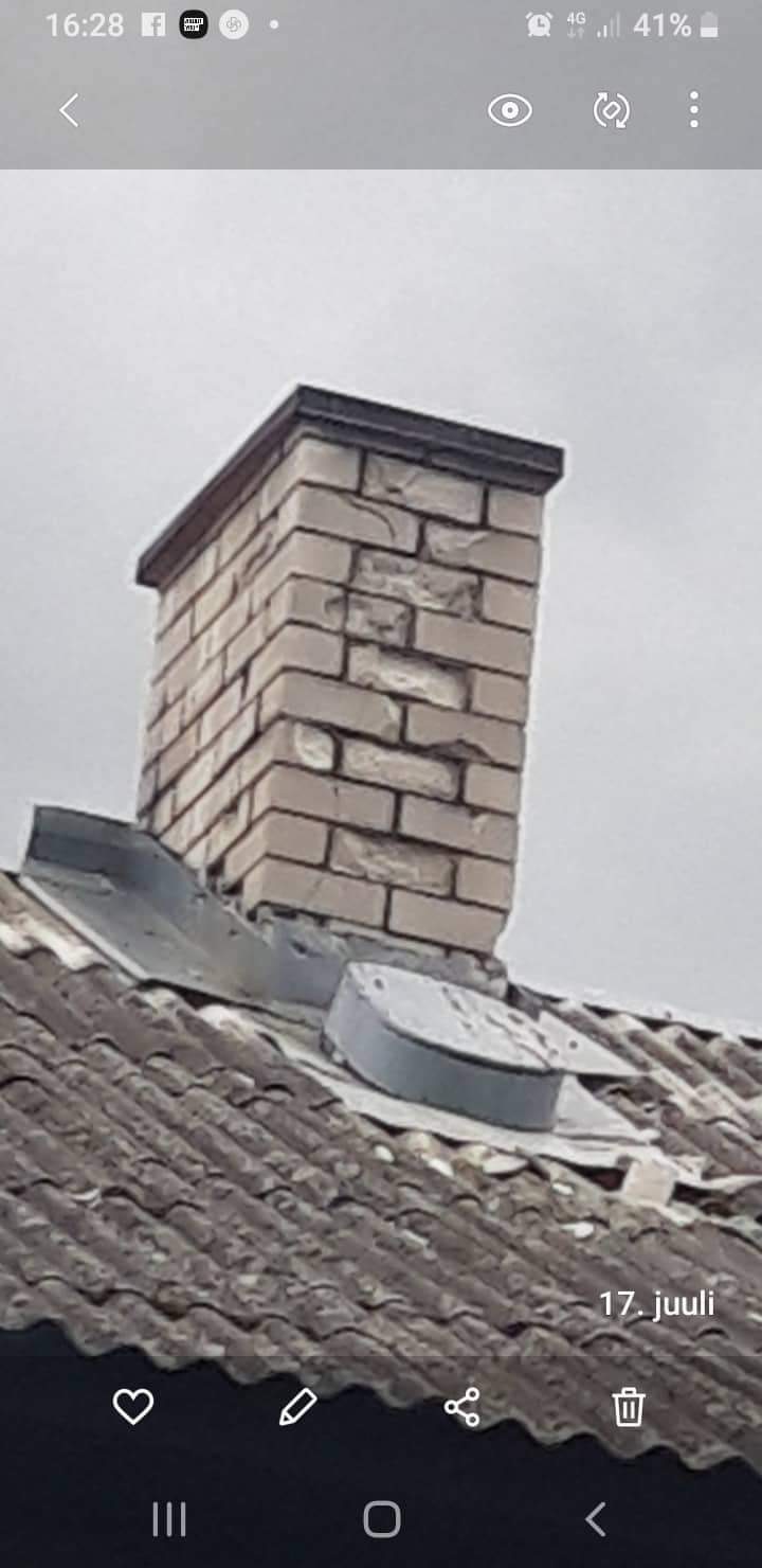 Vaja lammutada olemasolev korstnapits ja uus ehitada, paigaldada uus plekk.