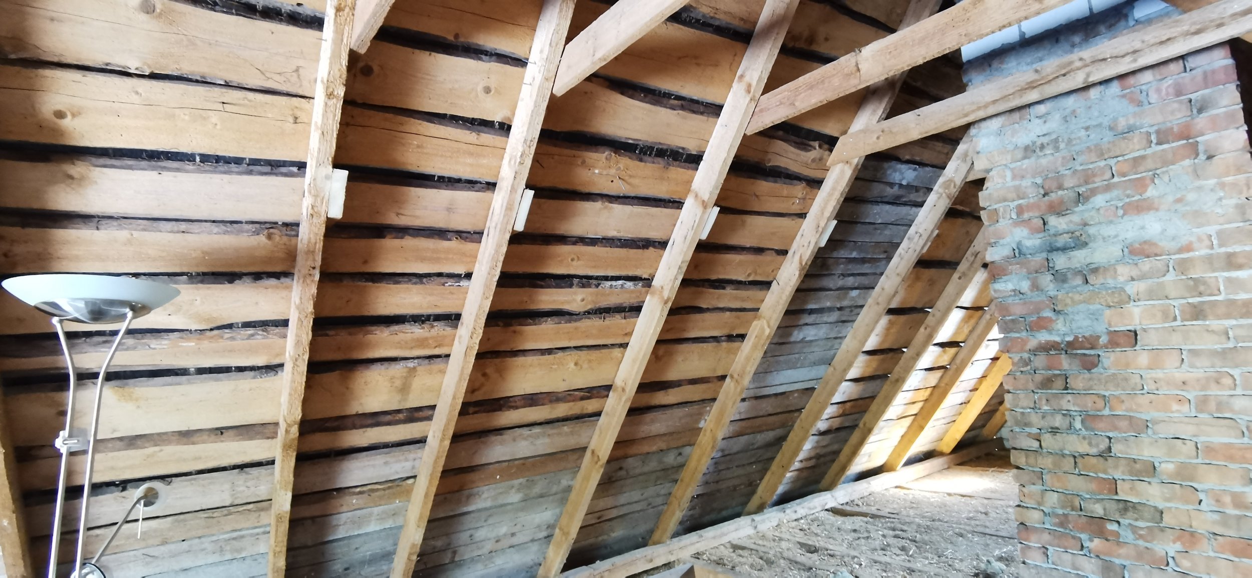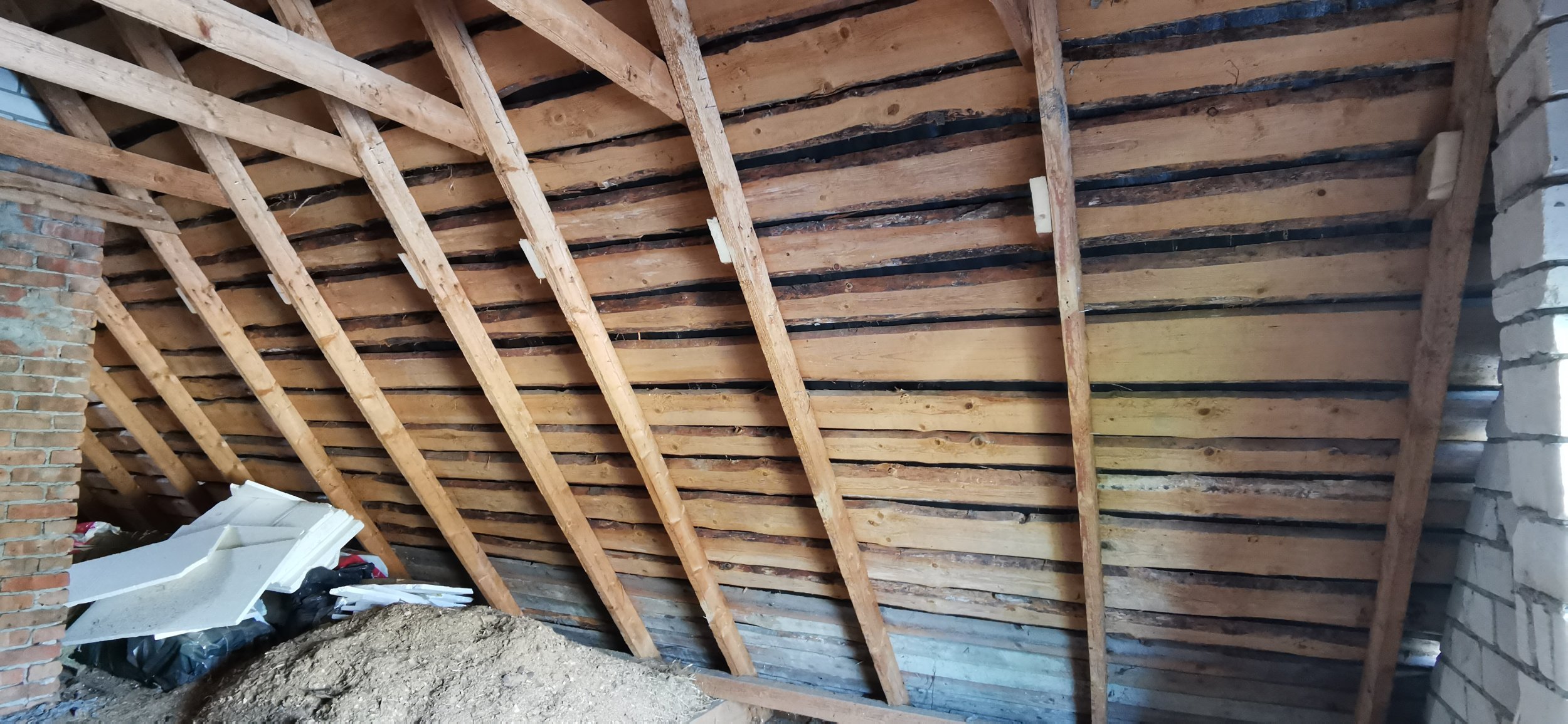 Pleki taga on paksem tõrvapapp, mille tahaks säilitada. Roov ja sarikad korralikud. Seest läheb pärast 15cm pur vahtu soojustuseks.