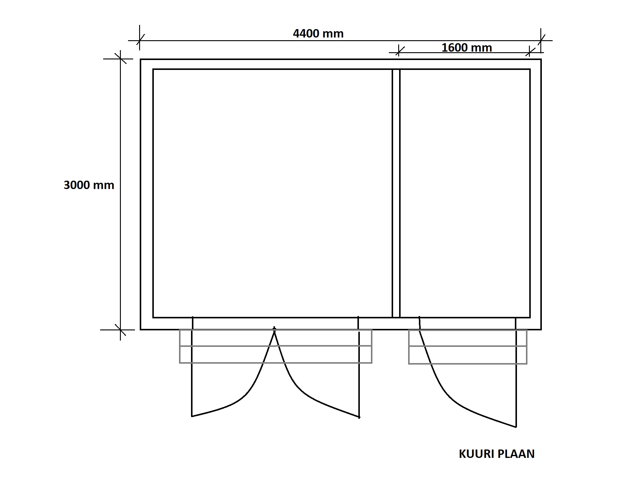 - Üksik uks 900x2100 mm, kahepoolne uks 1400x2100 mm, uksed puitkarkassist, väljast kaetud laudvoodriga.