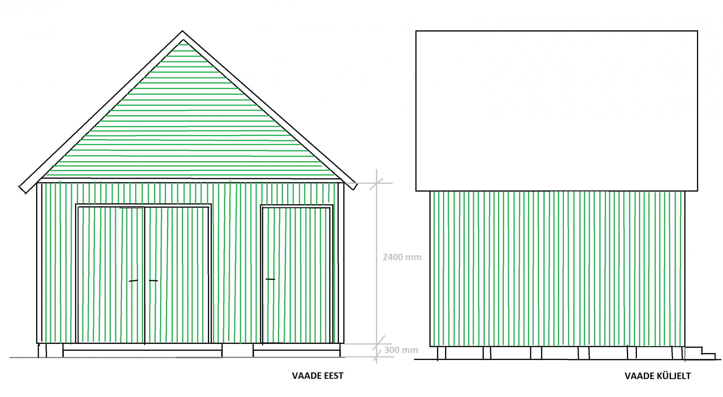 - Välisseinad kaetud voodrilauaga, paksus 21 mm, krunditud ja värvitud