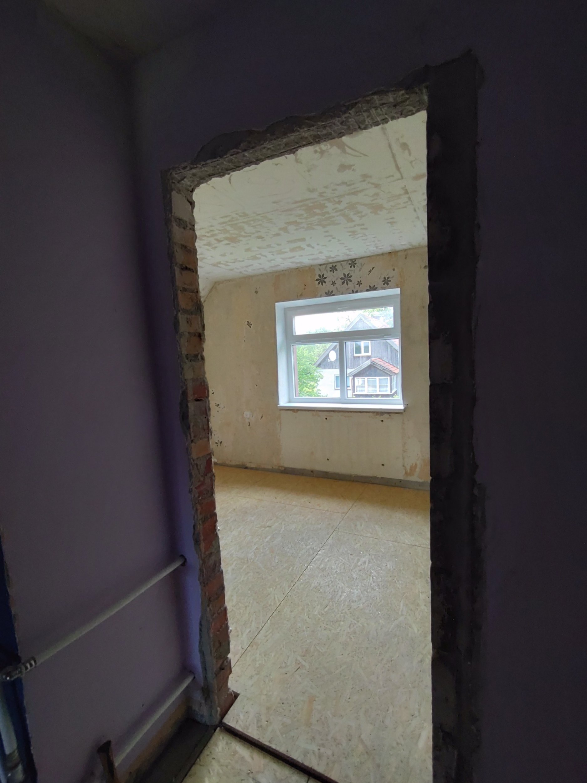 Krohvida ja viimistleda magamistubade kitsamaks ehitatud ukseavad. Sein on paksem kui ukse leng, ühelt poolt peab olema seina nurk ilusti viimistletud, kuna sinna ukse piirdeliistu ei tule. Aknad on 1,2*1,4 m magamistubades ja 0,8*1 m trepi juures.