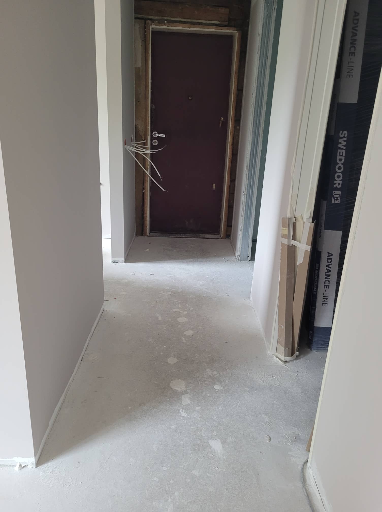 2K aluspõrand on valatud isetasanduva kipsiga.