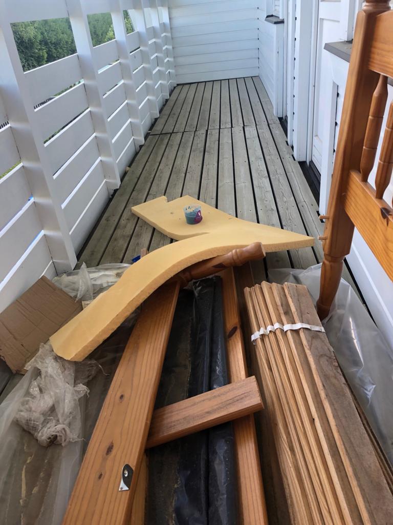 1200x6000 korrapärase ristküliku kujuga rõdu bituumen-katte uuendus. Vana on hakanud läbi laskma. Rõdu on puitpiirdega.