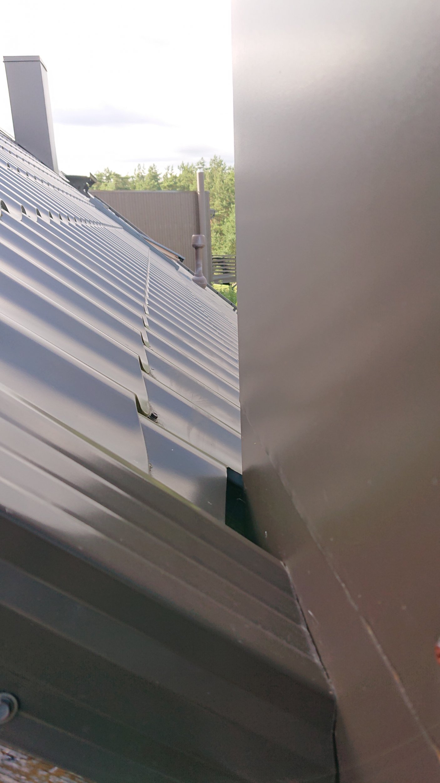Hinnas töö ja matetjal. Plekk harjast alla kuni korstna räästa poolse kpljeni.