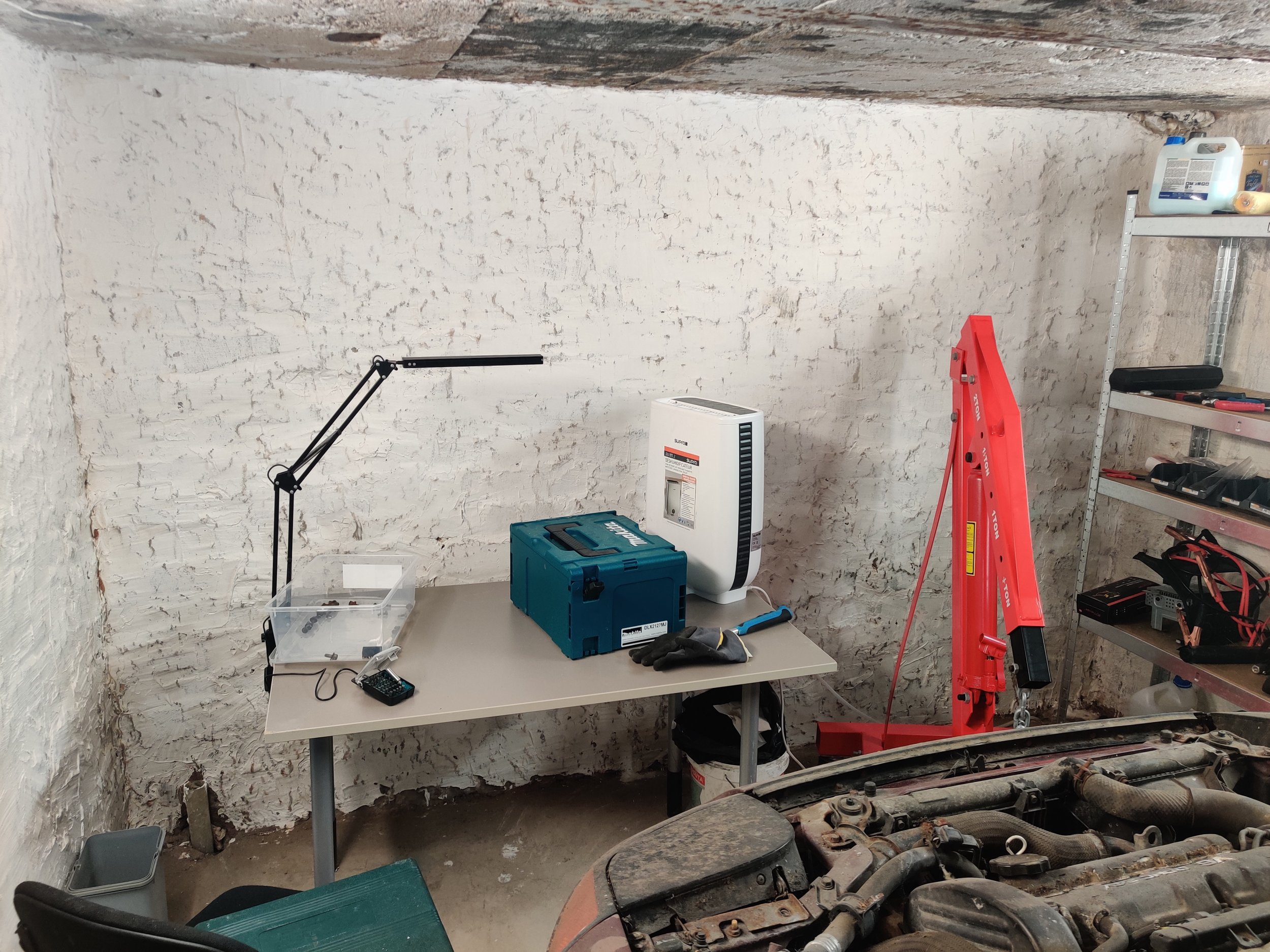 Garaažis on liikumatu auto- seinast meeter eemal. Keldris ei ole midagi ees.