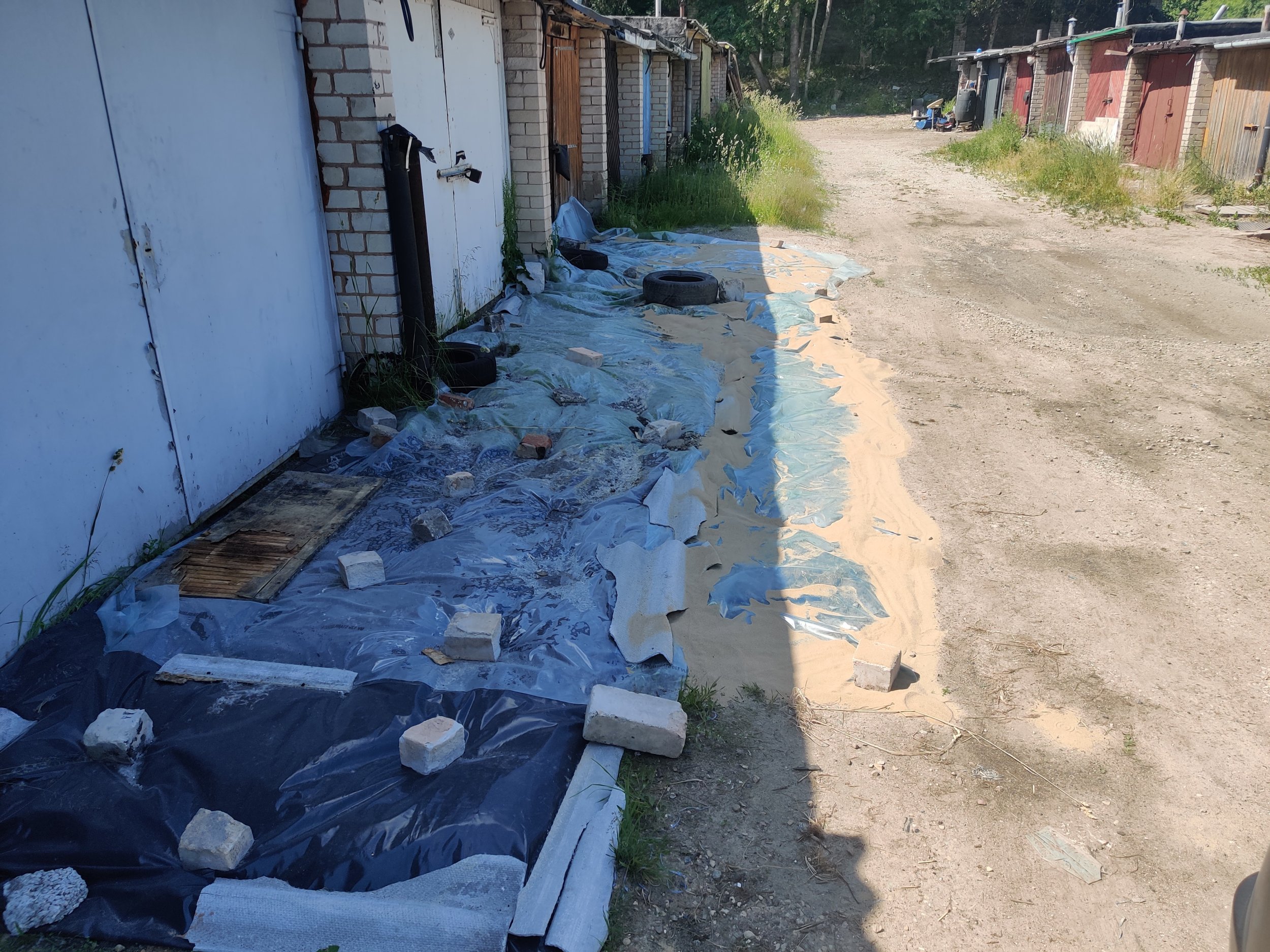 Ligi saaks pääseda ka pealt poolt, kus on teine rida garaaže (sinine kile on maha pandud, et hoiaks vett minu garaažist eemale).