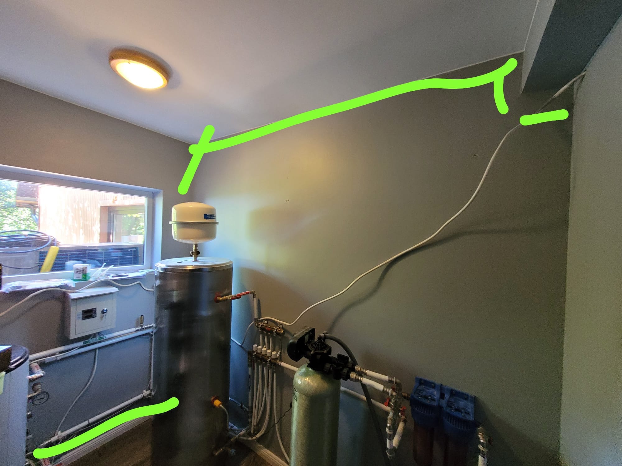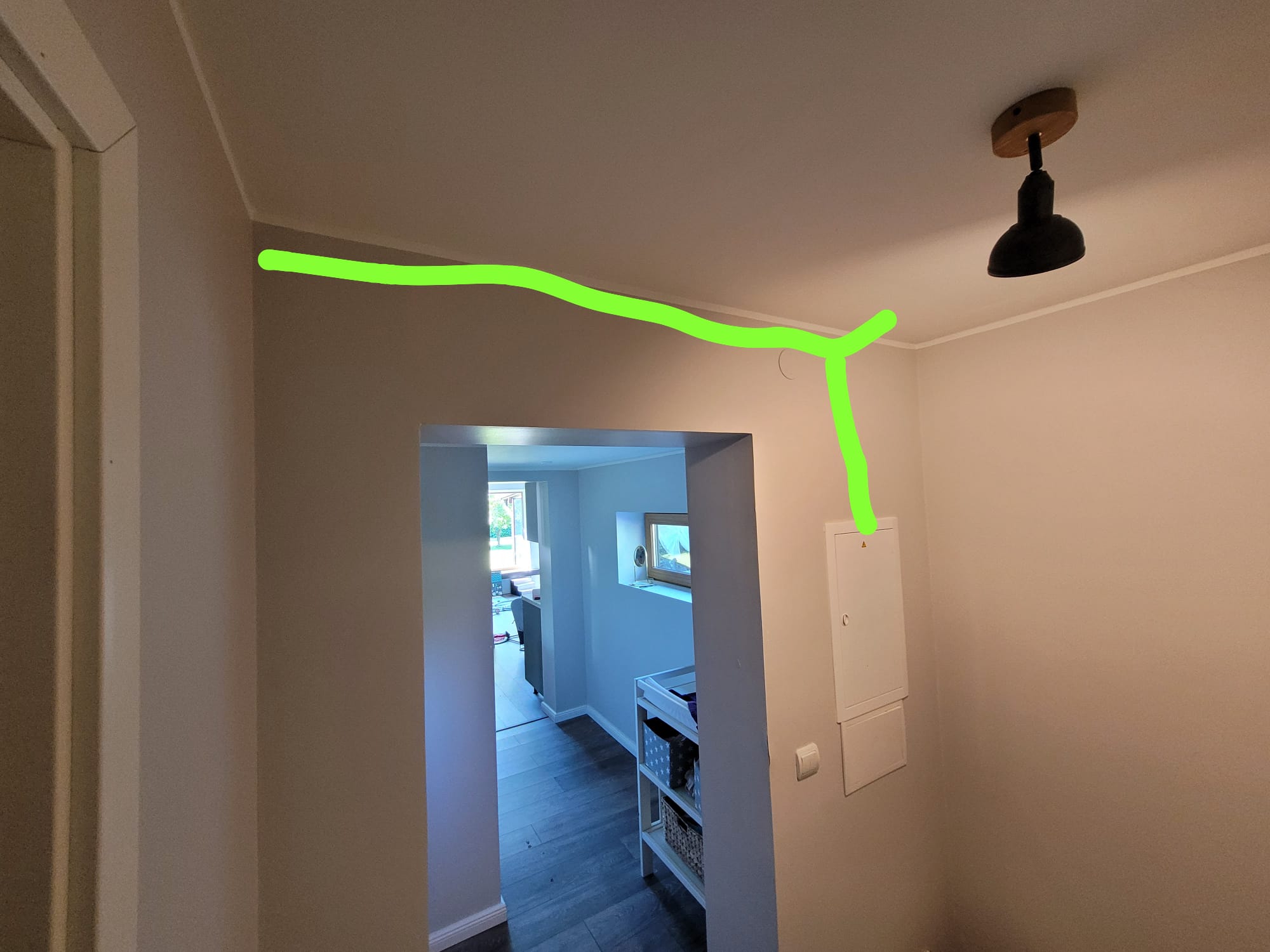 6. Vedada elektrikaabel karbikus elektrikilbi kohale. Kilpi sisse viia ja ühendada pole vaja. Teekond 12jm, kahest kipsseinast vaja auk läbi puurida.