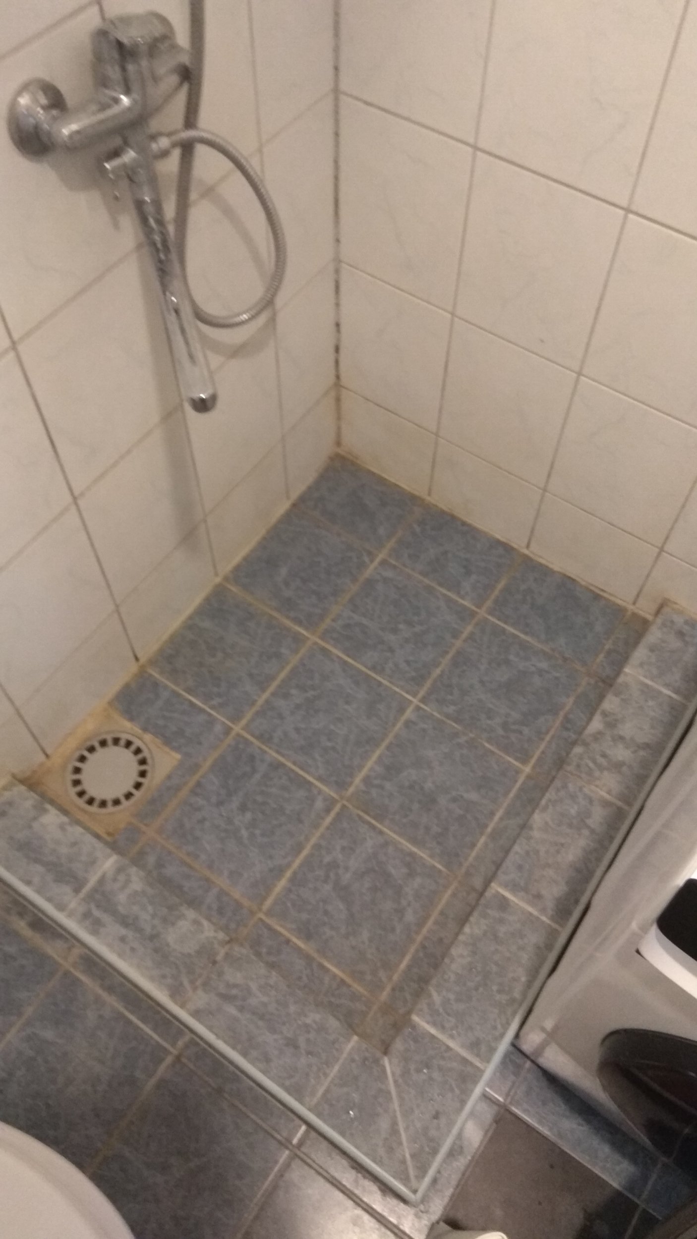 Dušinurga põrand on vale kallakuga, seega vaja põrand õige kallakuga üle plaatida ning ka uus trapikaan paigaldada.