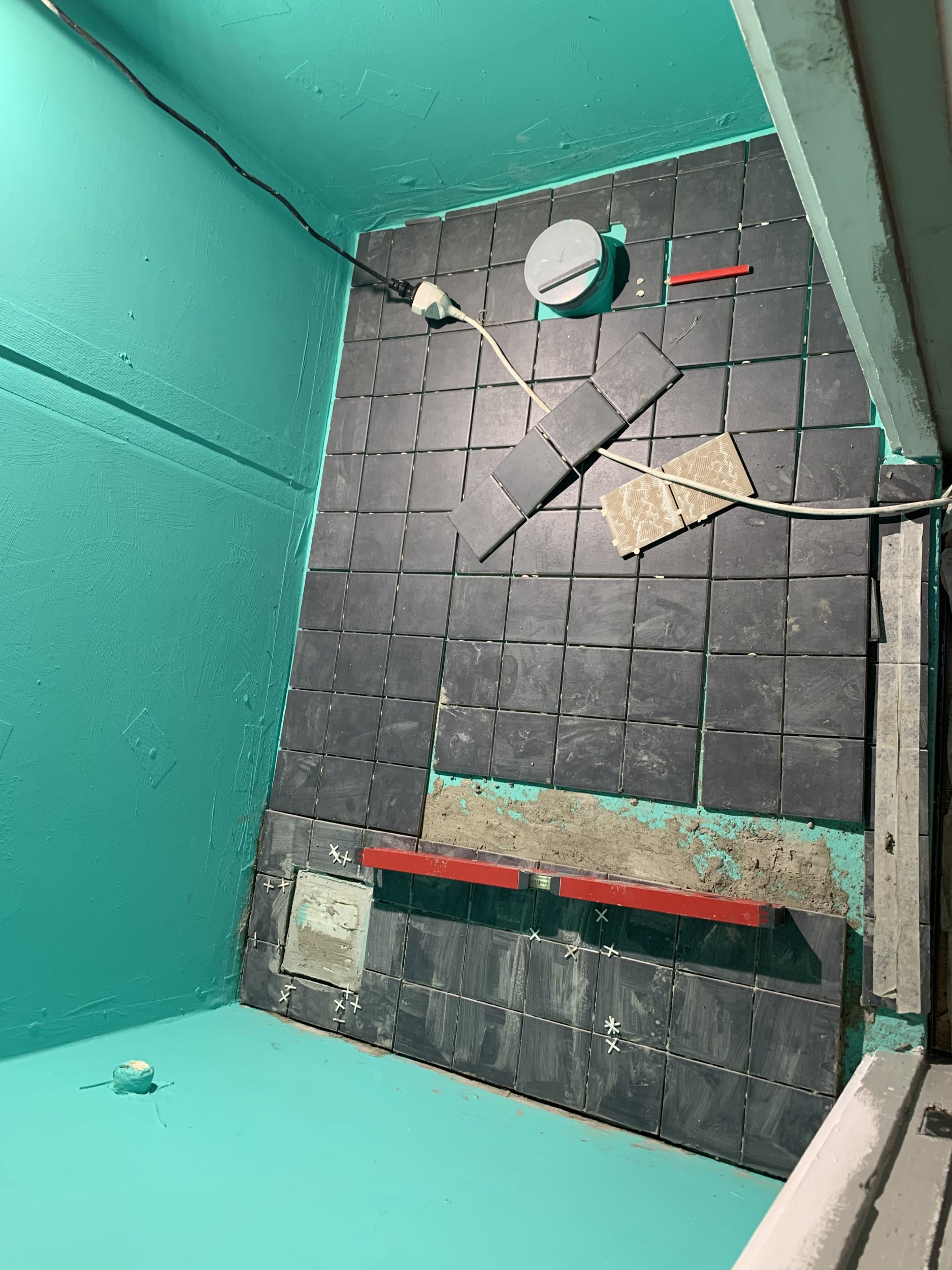 Vaja plaatida põrand ning teha kalle ~~1.3 ruutmeetrises vannitoas.