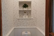 Vanni (plastik) asendamine duššinurgaga, uue kraanikausi ja -segisti ning duššisegisti paigaldamine, seinte ja põranda plaatimine.