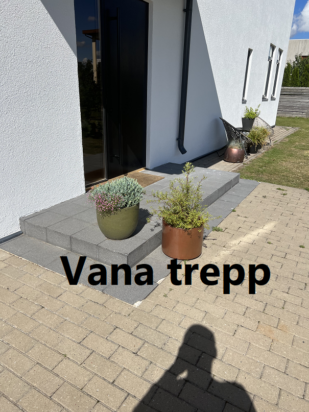 õõtudega: 4 x 1,7 m ja uue trepi kõgus tänavakivist - 20 cm