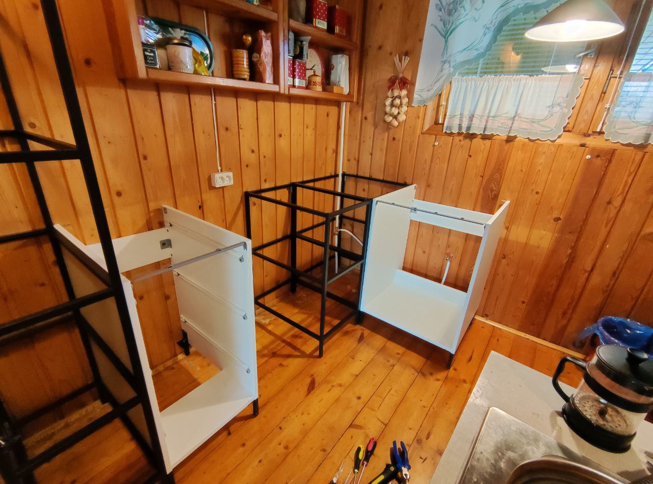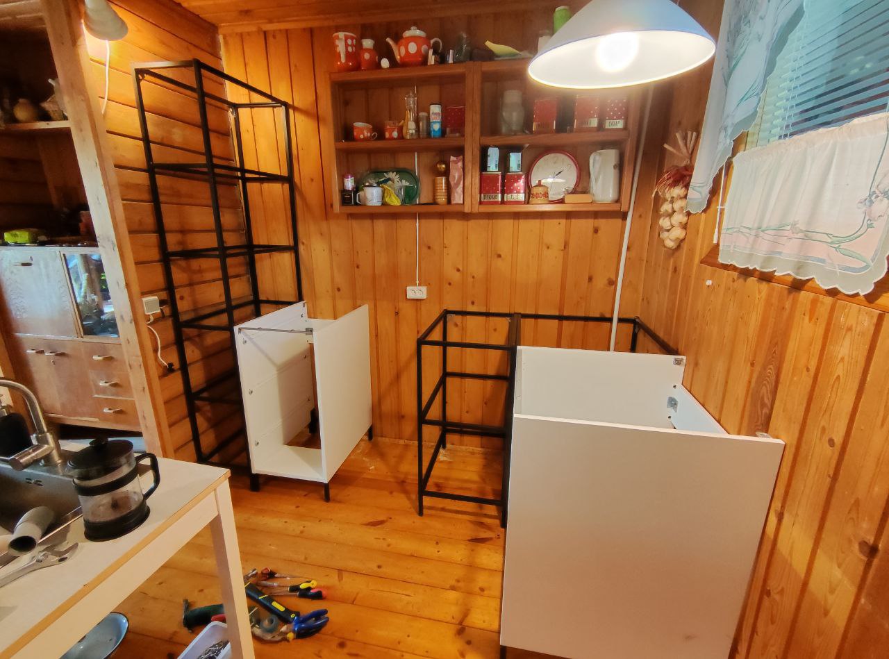 Olemasoleva IKEA köögi tööpinna plaati (246x 63 x 3.5cm) lõigata kaheks osaks, kapide tasandamise üle kontrollida ja tööpinda nurgakööki ära paigaldada. Nurgaköögi kapid on juba eelnevalt kokku pandud ja paigaldatud.
