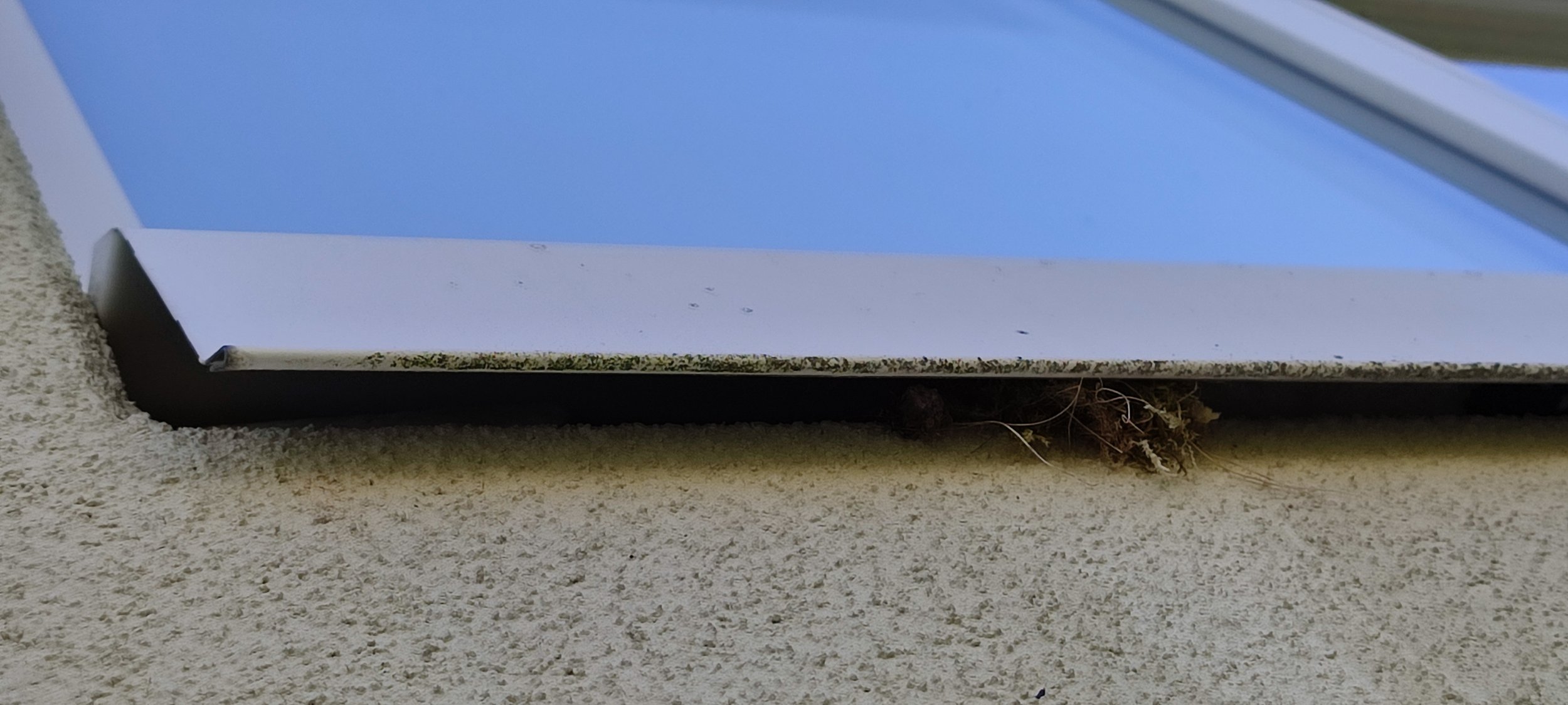 Linnud rikkusid aknapleki aluse soojaisolatsiooni ära. Nokkisid soojustuse välja ja ehitasid asemele pesa. Pesa oleks vaja eemaldada/desnfitseerida ja aknapleki alune uuesti soojustada.