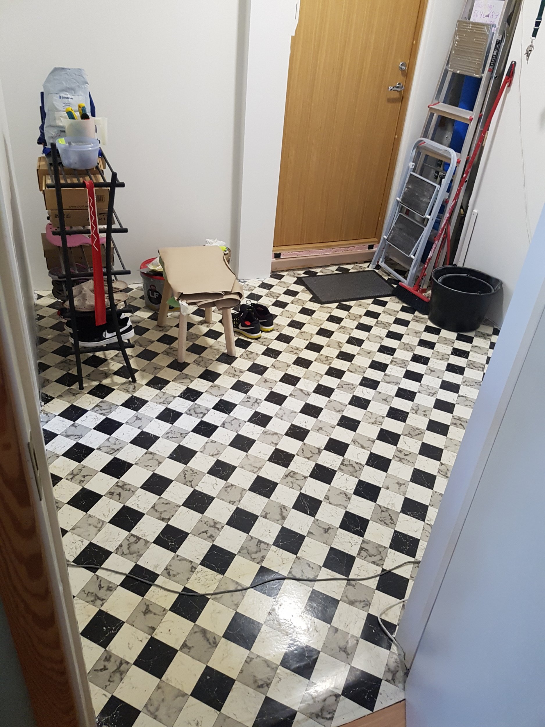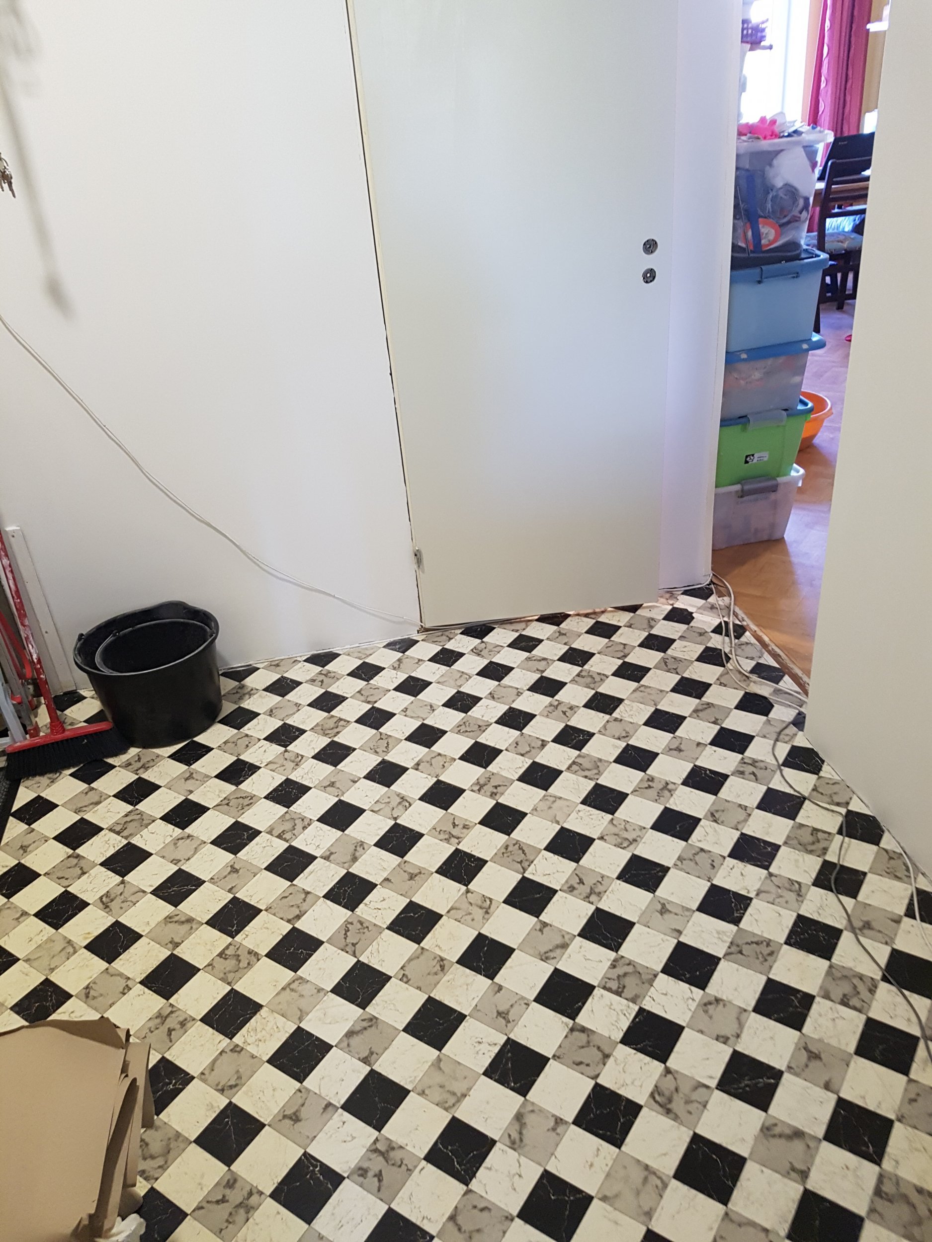 Muud vahendid on ostmata. Tahan plaate maha malemustris nagu on pandud köögis (köögis samad plaadid maas, pandud aprillis 2022) . Vaja valada uus põrand, segu alla tuleb panna soojus ja heliisolatsioon vastav penoplast, Praegu on põrandal 20a vana linoleum, selle ääre alt paistab pruuni põrandavärviga värvitud põrandapapp. Põranda liistud on juba eemaldatud.