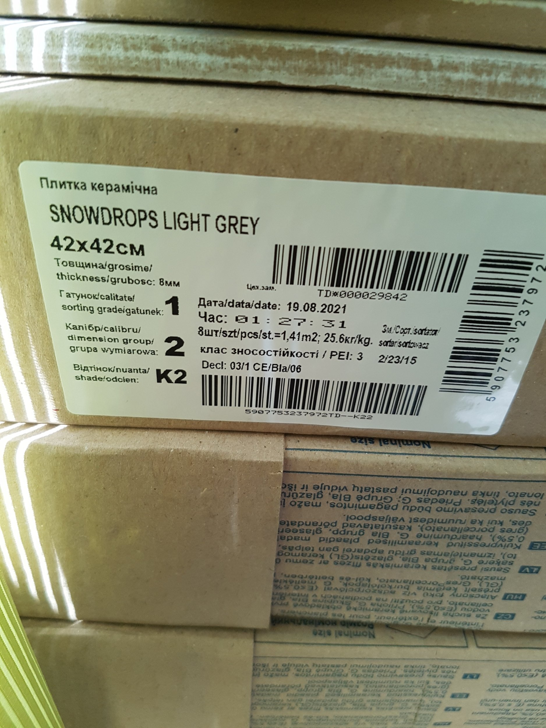 Esikus on lagi ja seinad remonditud: krohvitud, pahteldatud ja värvitud. PLAADID OLEMAS: täismass plaadid, 42x42cm 10 karpi+1 plaat+köögist järele jäänud tükid, karbis 1,43 m2, koodiga sort 1, grupp 2, klass PEI 3, väga raksed, ASUVAD KORTERIS.