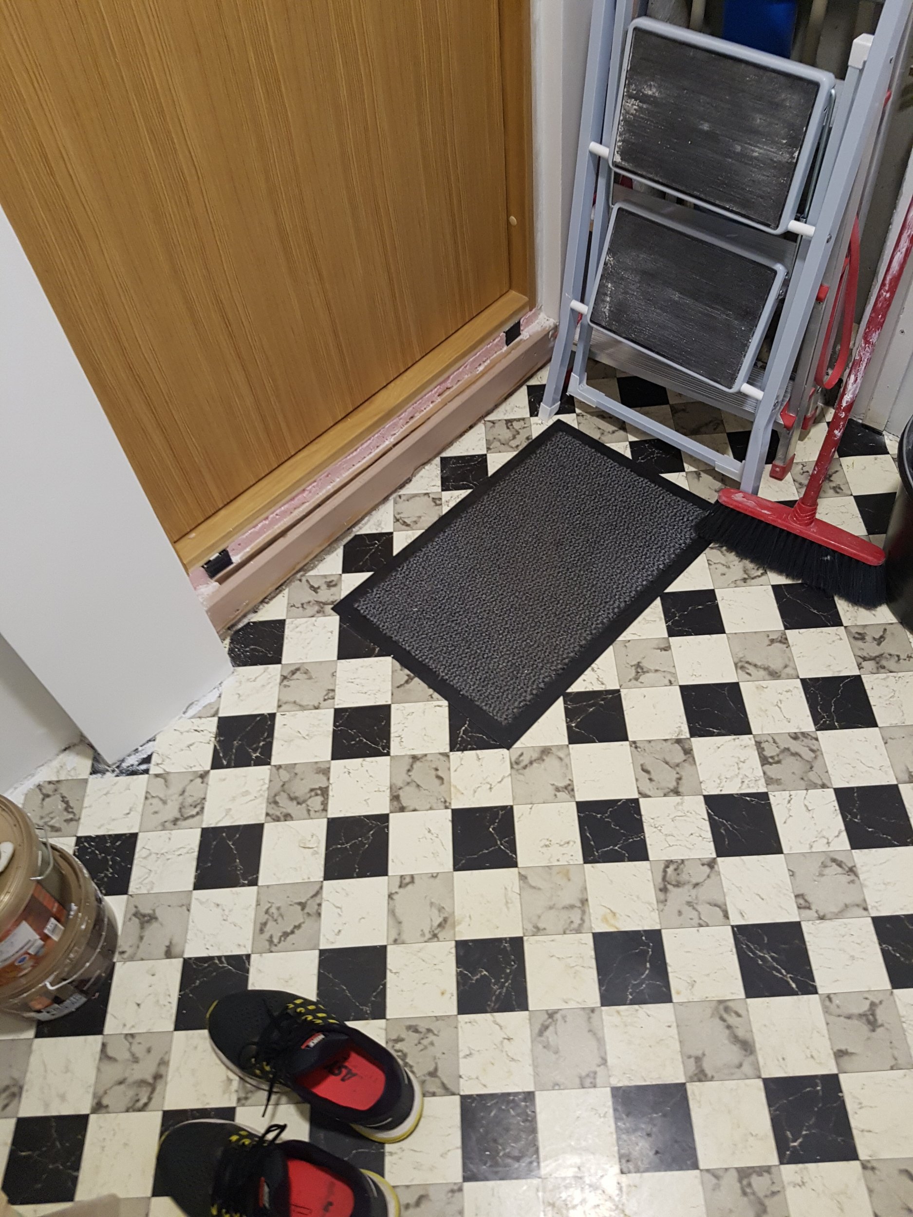 Kortermajas Saue linnas Harjumaal 4.korrusel ootab esiku põrand vahetamist. Põranda suurus ca 2,64mx2,64 m, esikus 5 ust (3 tuba, vannituba ja välisuks). Esik on tühjaks tehtud.