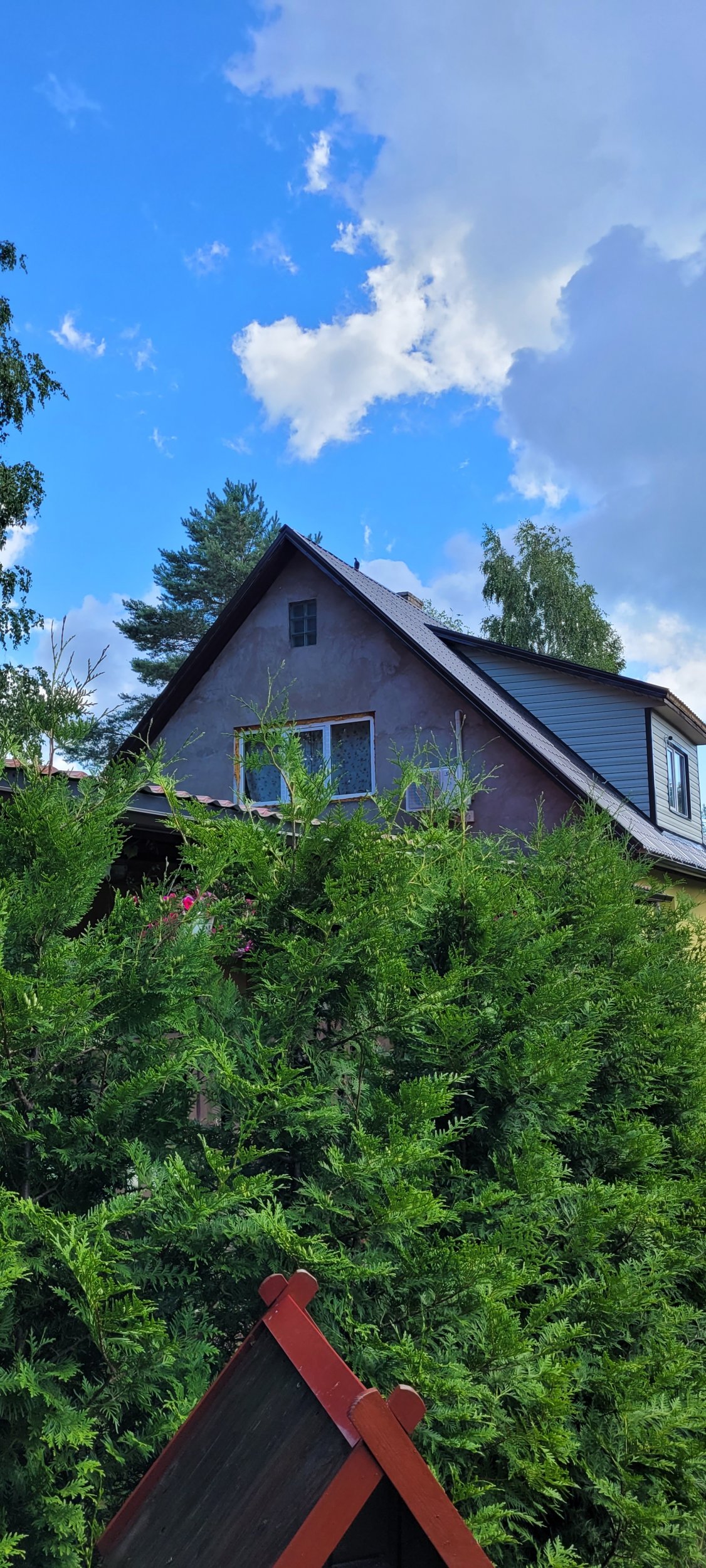Внизу стены (основание) металлочерепица - стена это торец второго этажа в частном доме.