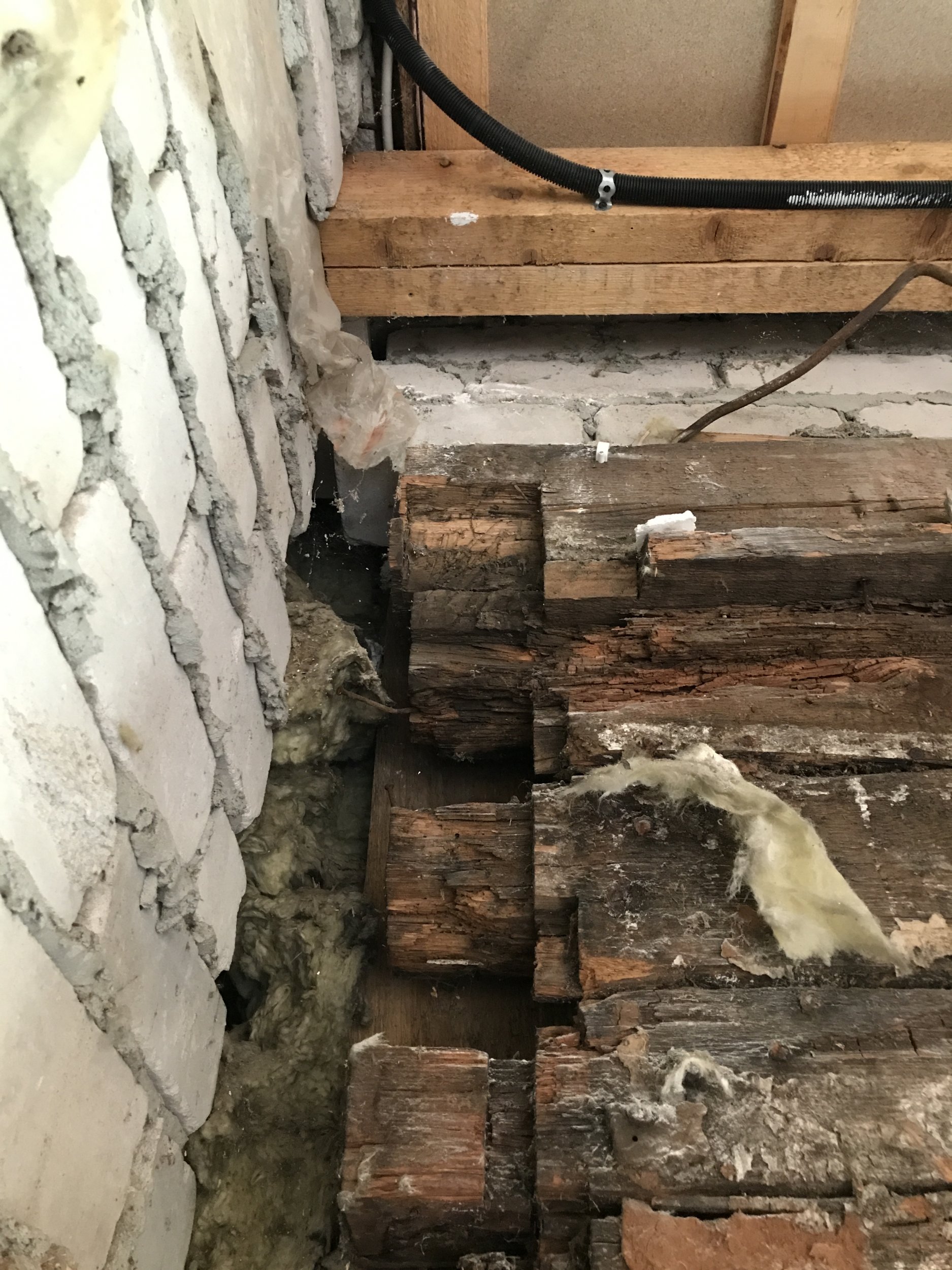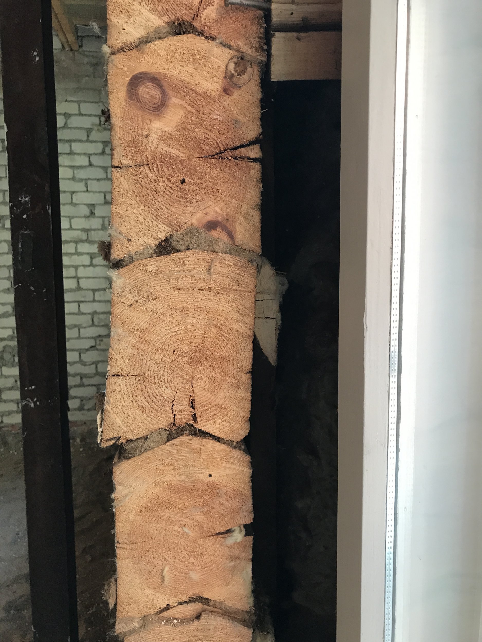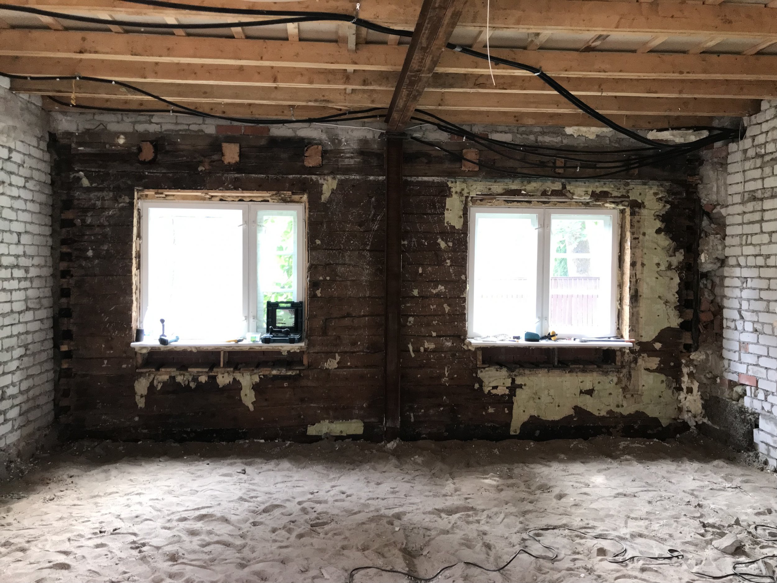 Probleemse seina konstruktsioonis on 1930 ehitatud rõhtpalk, mida hoiab püstises asendis vertikaalsed lauad/prussid, seejärel villakiht, seejärel seina taha laotud uus 120 mm kärgtellis.
