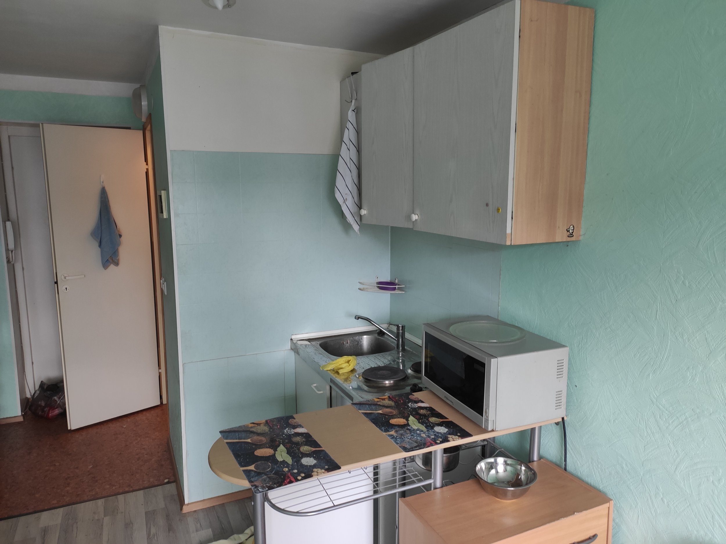 Objekt asub Mustamäel, Akadeemia teel, vanas 5-kordses paneelmajas, 1,5 või 2 korrusel. Tegemist on 16m2 tudengikorteri tüüpi köök-toaga, lisaks eraldi vannituba.