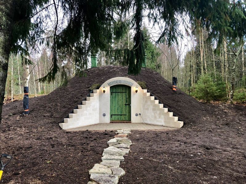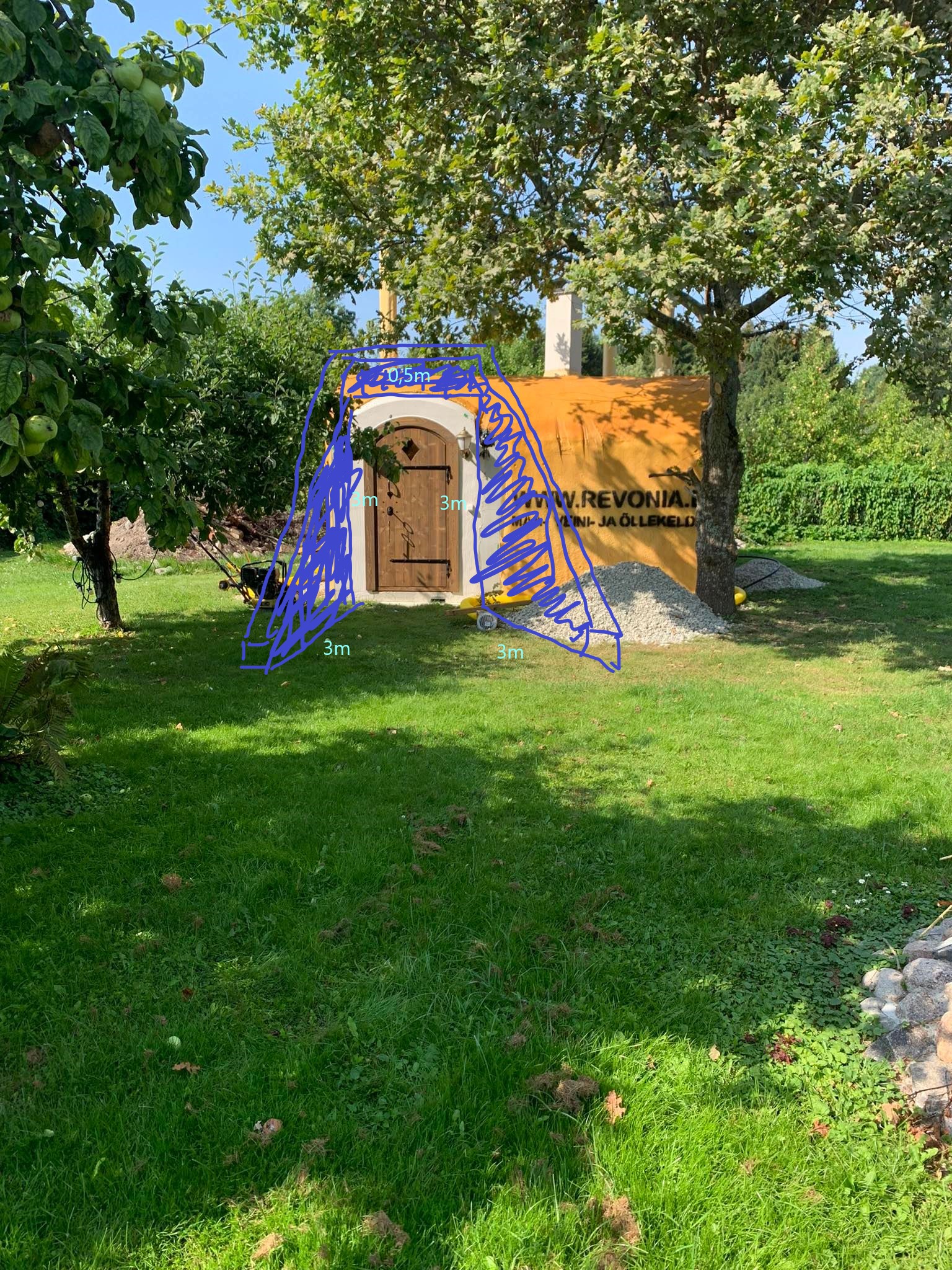 4. Laduda müürid vastavalt lisatud näidisele ja sketsile. Müür läheb pinnase hoidmiseks ka üle ukse, tuleb siduda betoonsaunaga. (Seina paksus 10cm).