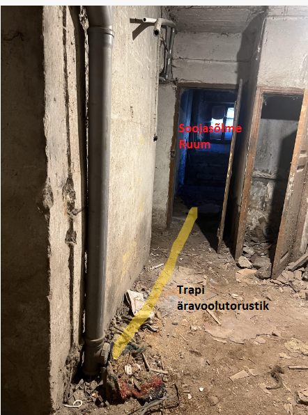 Põrandale paigaldada trapp koos haisulukuga, võimalike veeavariide tarbeks. Trapp ühendada koridoris paikneva kanalisatsioonitorustikuga, torustiku pikkus ca 5,5 m. Trapi ühendus torustikuga teha nõuetekohase kaldega, kasutades nõuetekohase läbimõõduga torustikke, liitmestikke ja muid materjale.
