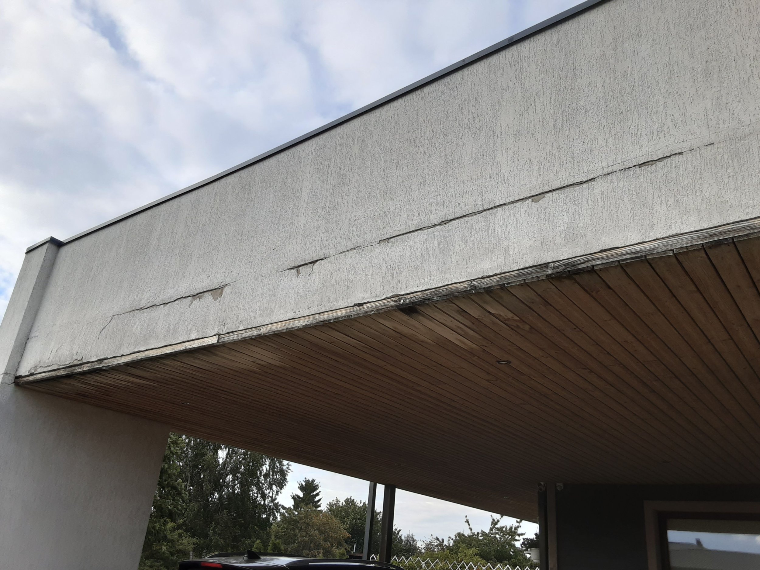 Suuremate seinte värvimine ja krohvi parandustööd. Maja äsja pestud. Seinte kõrgus 6-7m, värvitav pind koos akendega ca 250m2. Aknad jms katab kinni töötegija. Uuesti vaja krohvida ca 25m2 (pildil nähtavate kahjustustega). Lisaks siis väiksemad krohviparandused. Maja asub Harku vallas Murastes.